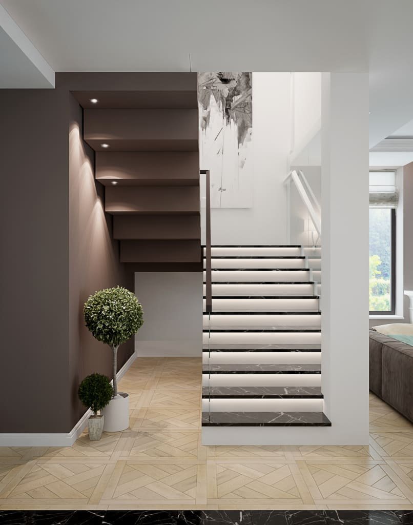 Мраморная лестница с подсветкой