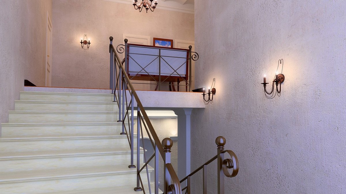 Декоративная штукатурка на лестнице