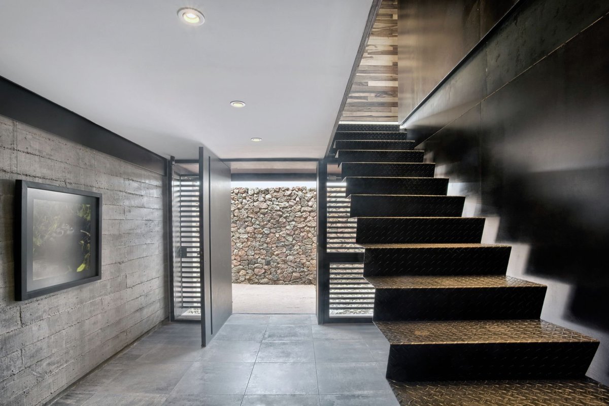 Серая лестница в интерьере