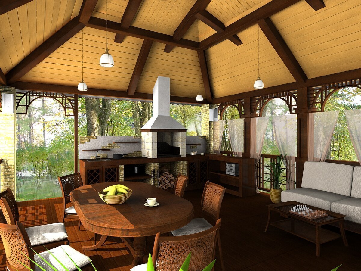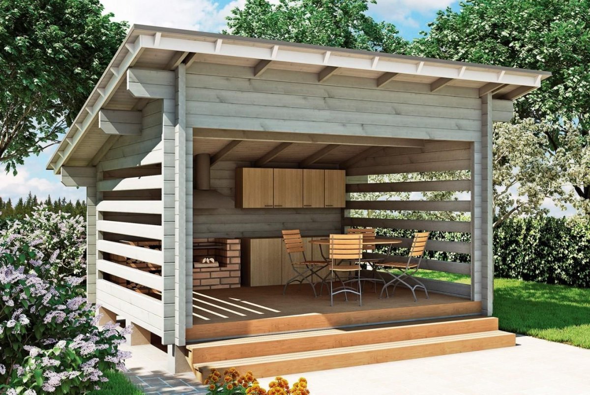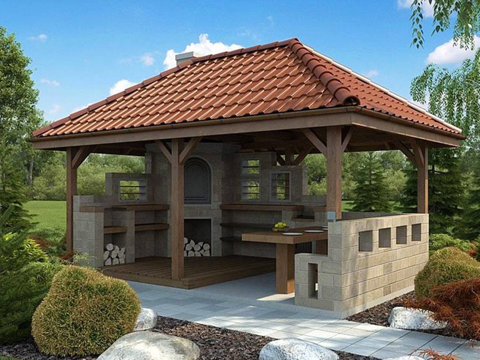 Беседка 3х4 с четырехскатной крышей с мангалом