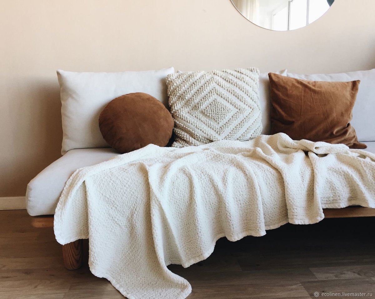 Белый диванный плед хлопок 50 процентов и Пан 50 процентов