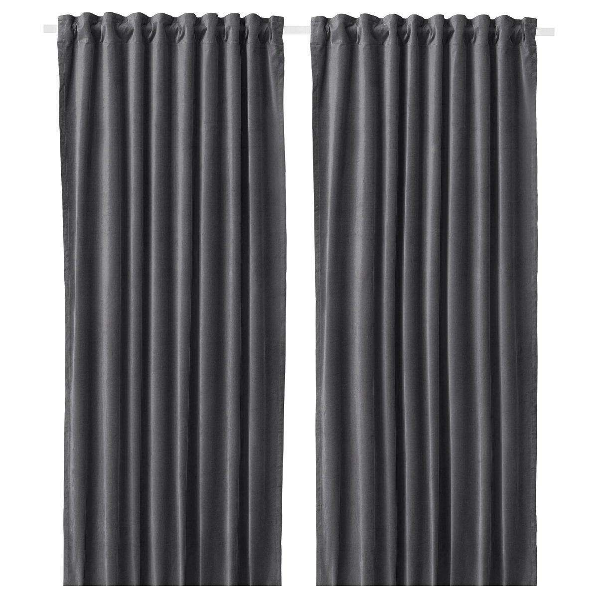 МАЙГУЛЛ гардины, блокирующие свет, 1 пара, серый, 145x300 см