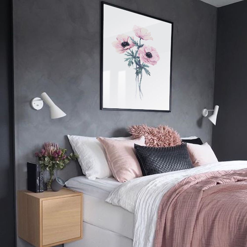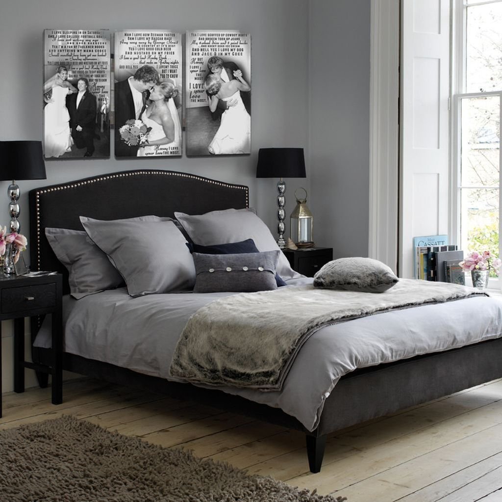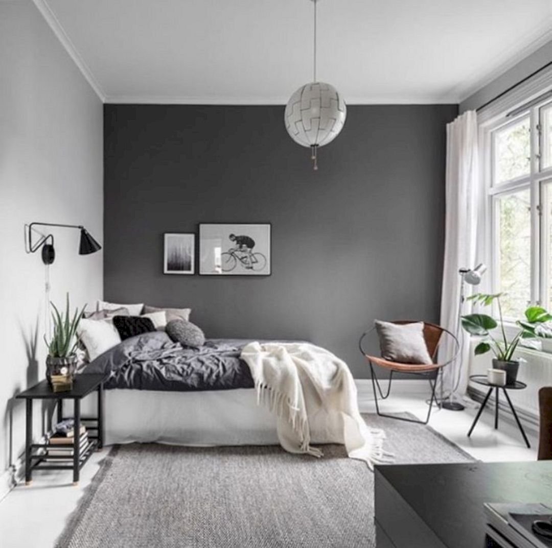 Серые стены в спальне