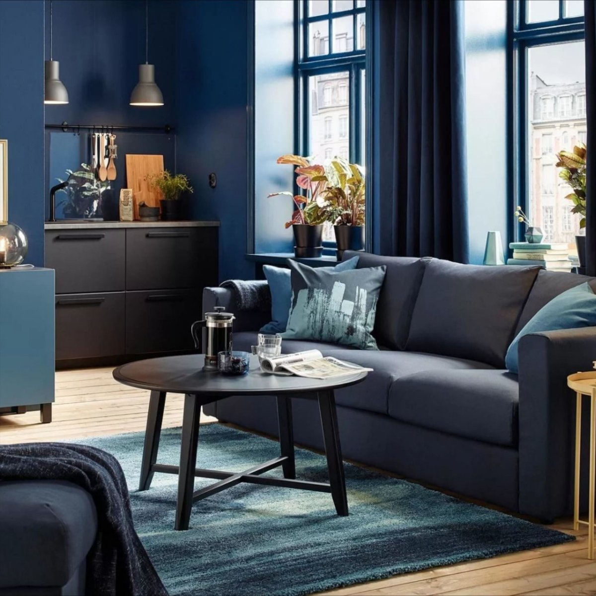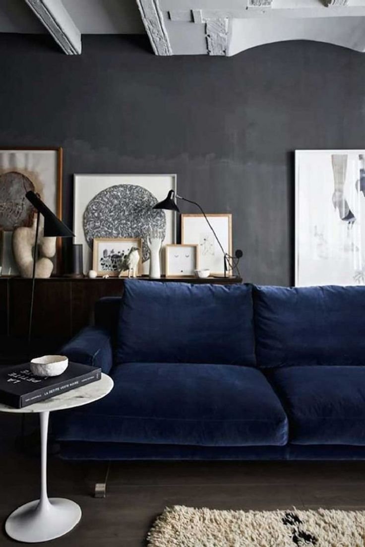 Темно-синий диван в интерьере