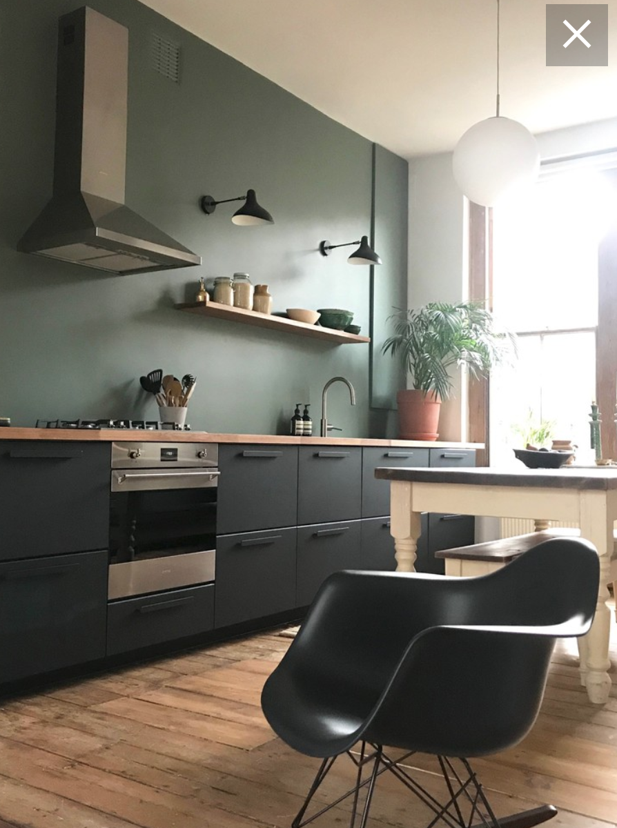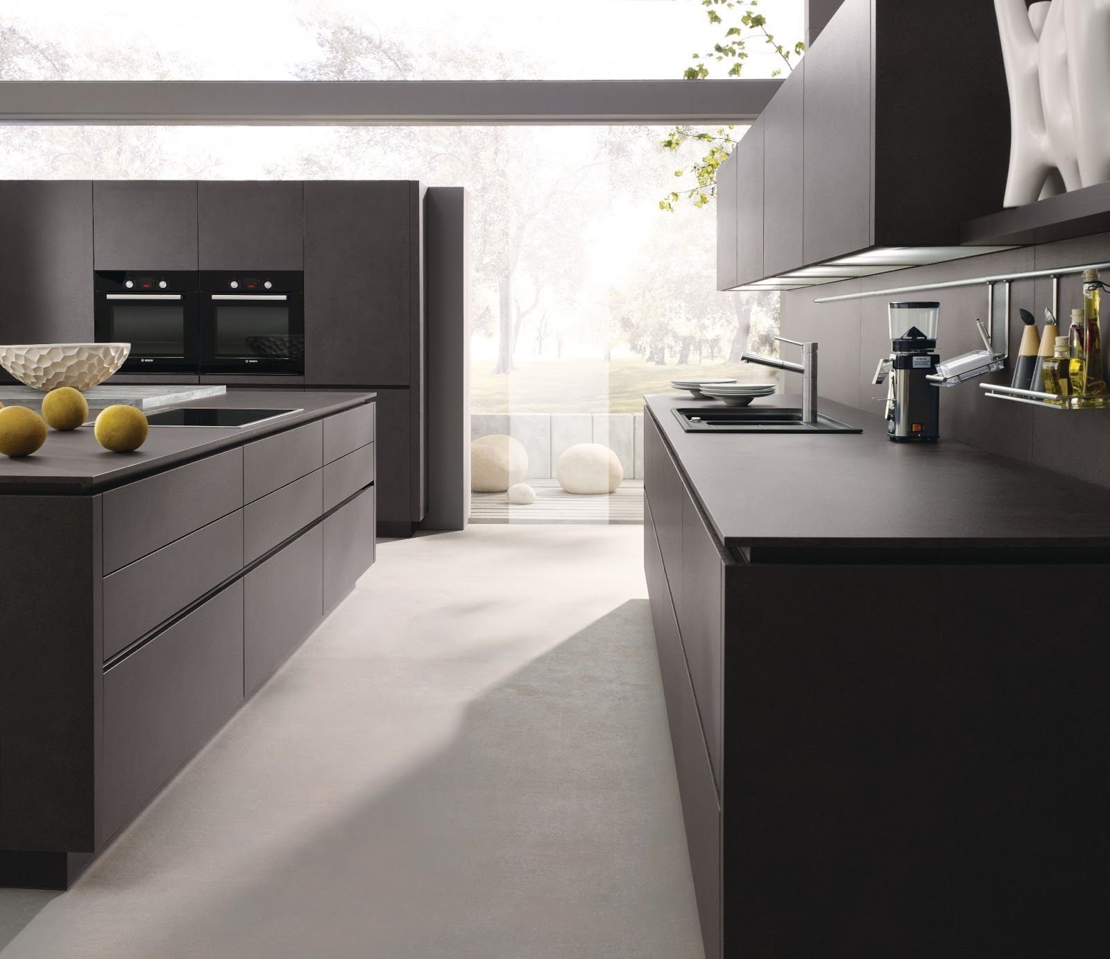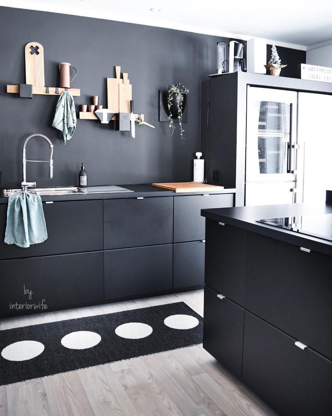 Темно-серый интерьер с черной кухней Pinterest