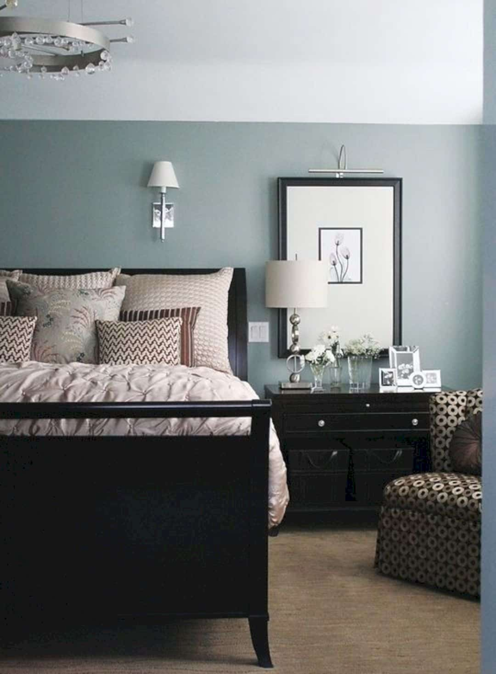 Интерьер спальни с темной мебелью