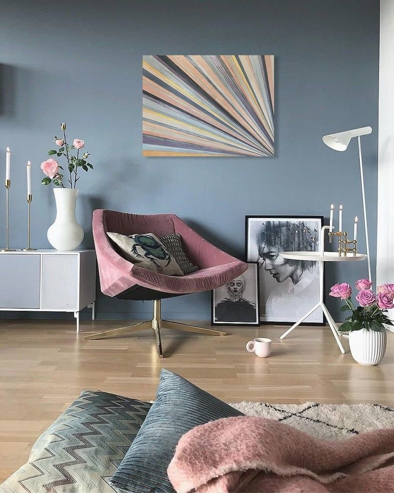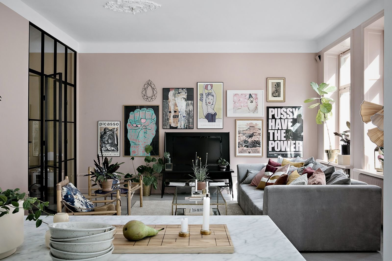 Серо розовая гостиная в скандинавском стиле