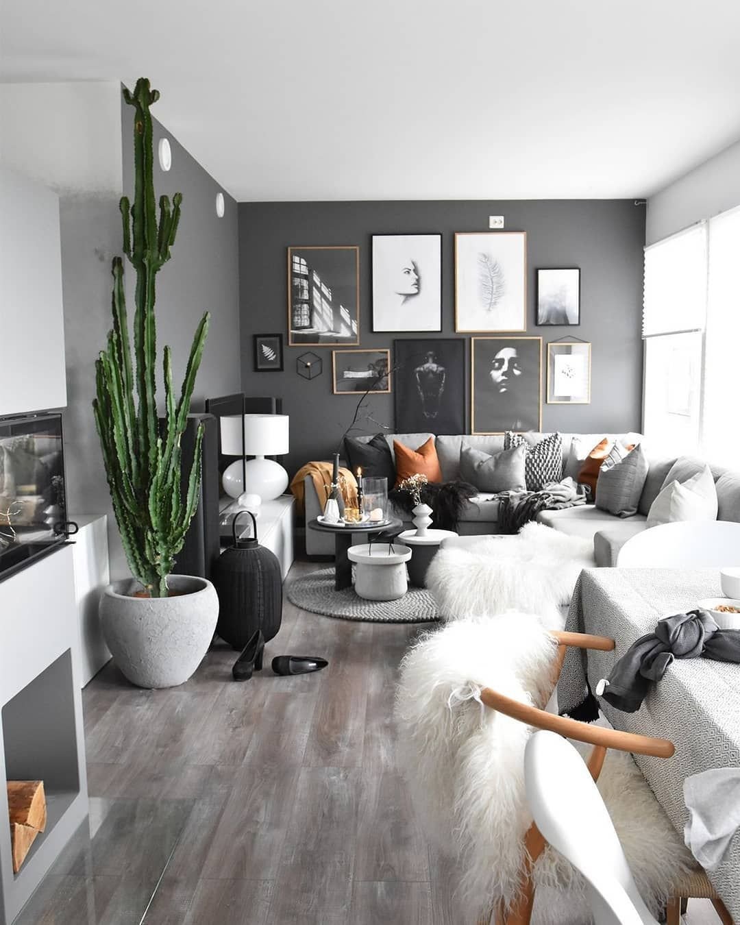 Гостиная в скандинавском стиле в серых тонах