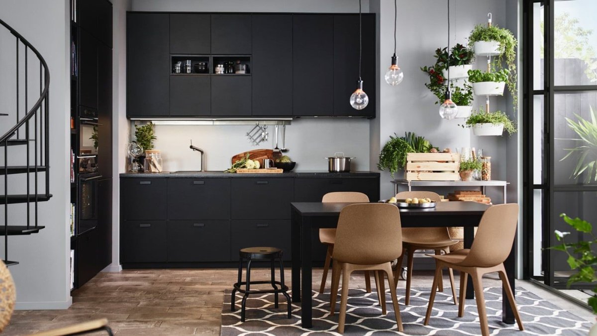 Черная кухня икеа Кунгсбакка