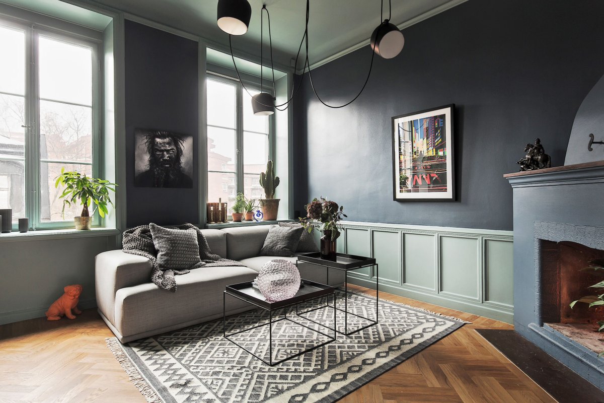 Сочетание серого и синего в интерьере