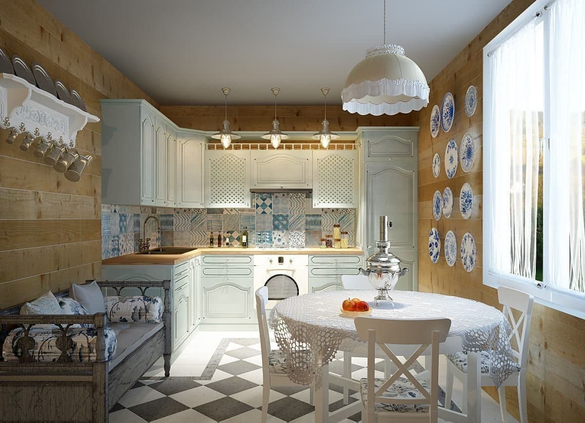 Кухня в брусовом доме в стиле Прованс