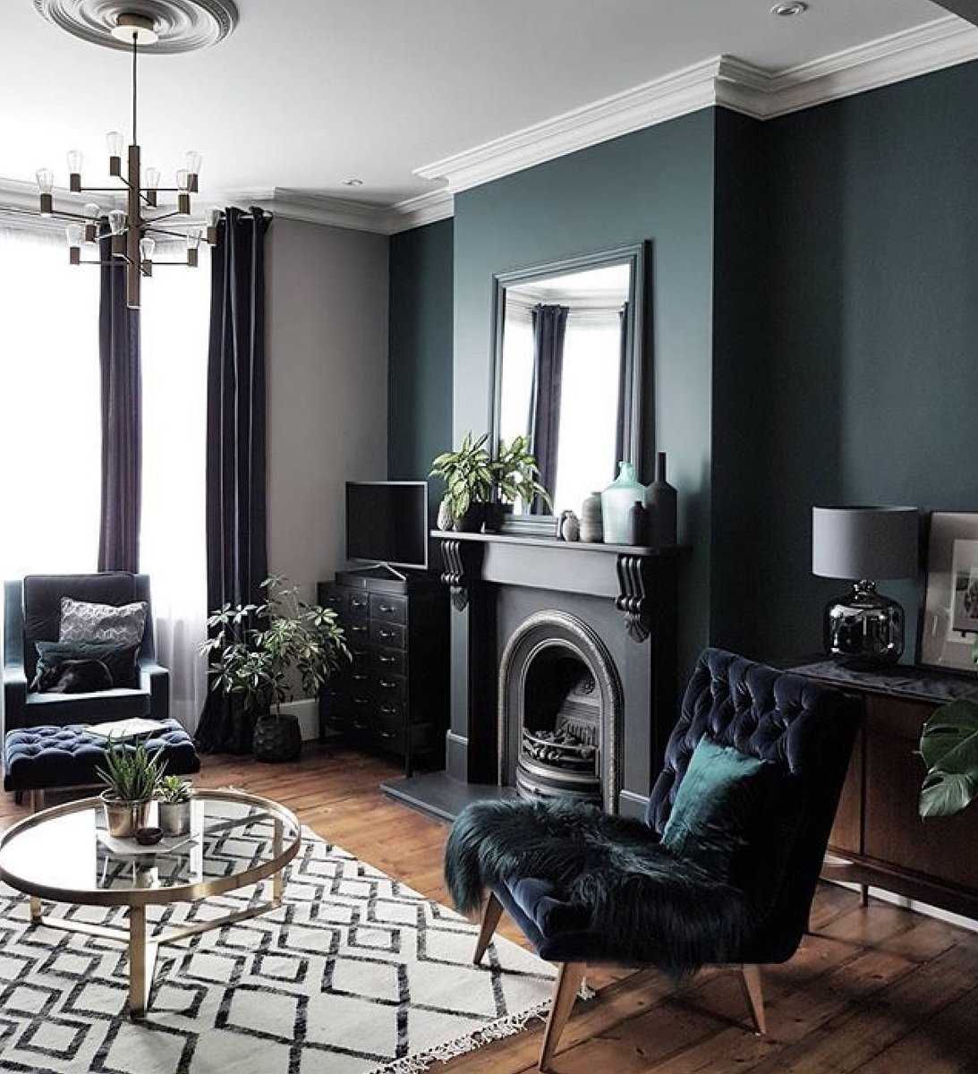Гостиная с темно зелеными стенами