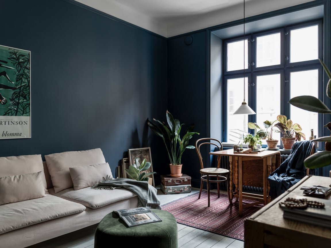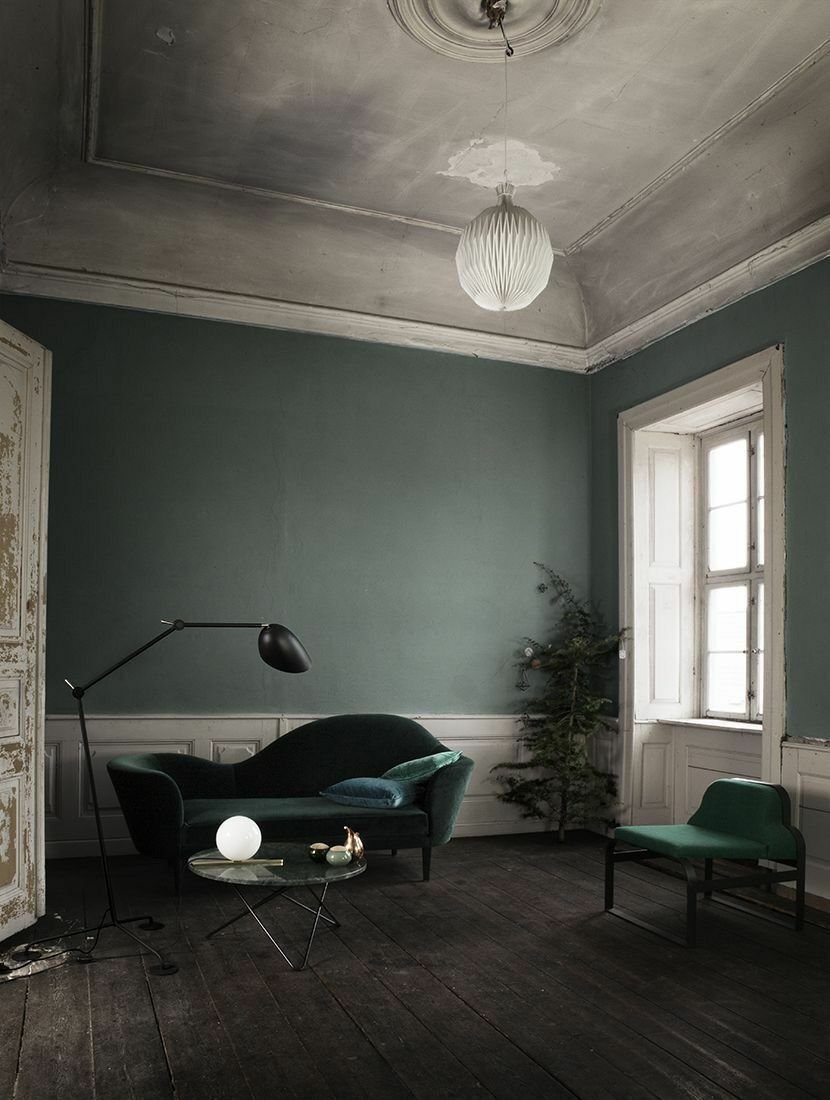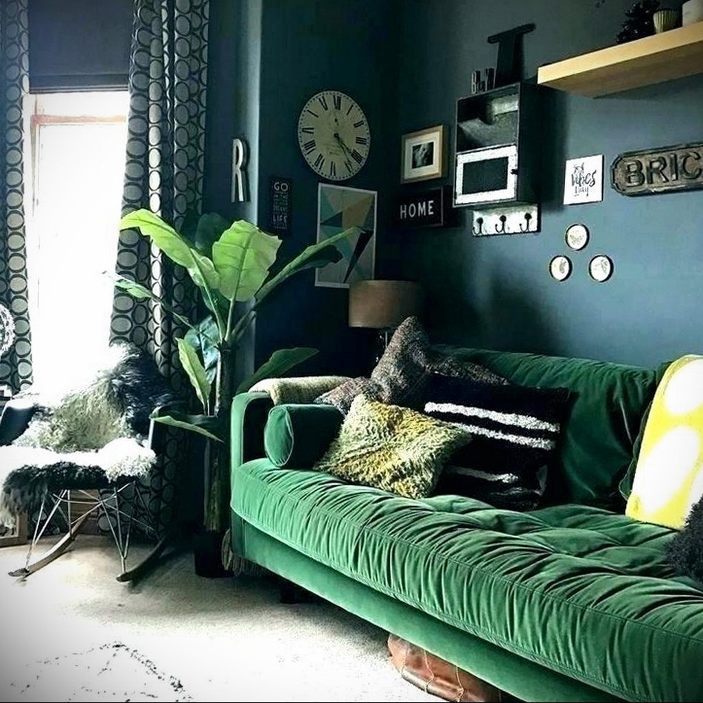 Гостиная в скандинавском стиле изумрудный цвет