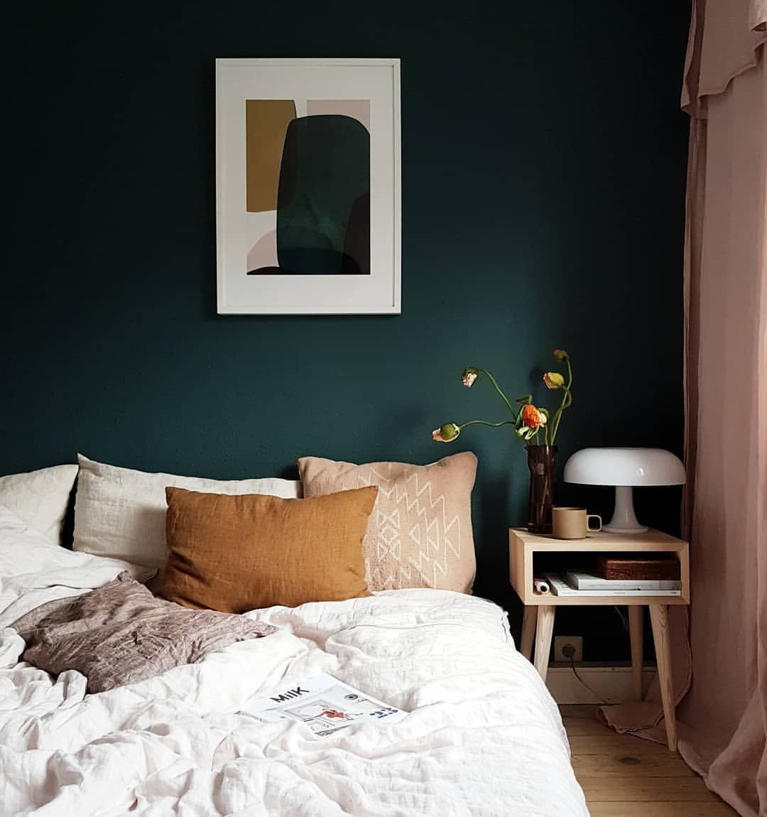 Темно зеленые стены в спальне