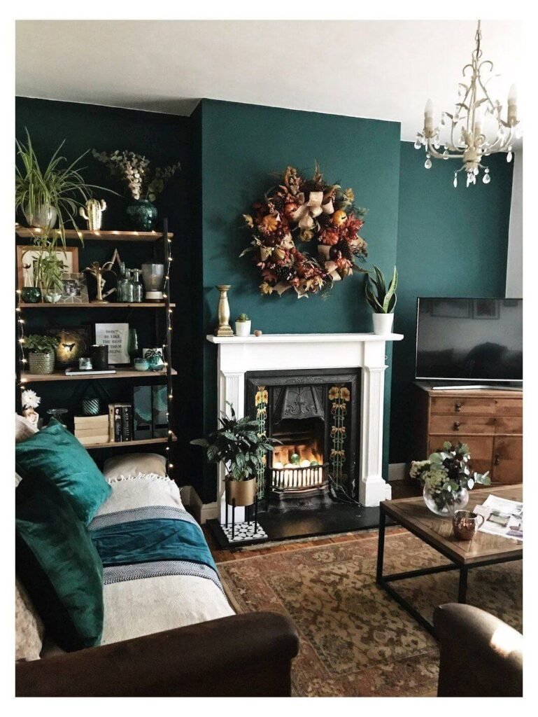 Темно зеленый цвет стен в интерьере