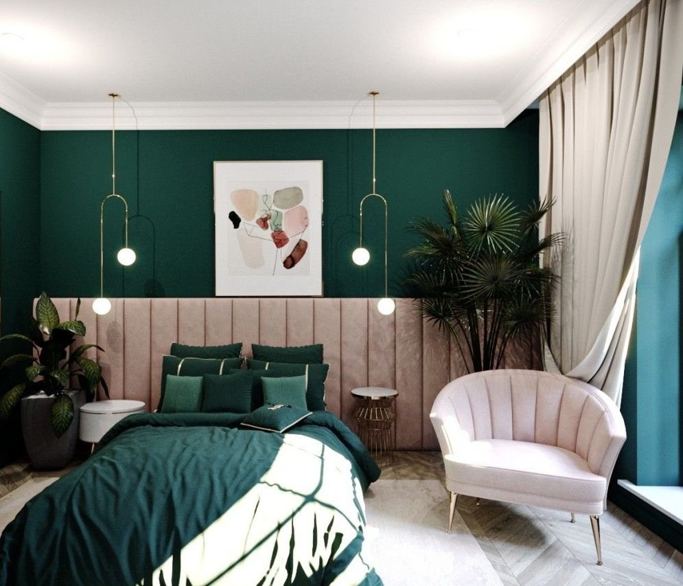 Спальня в изумрудных тонах