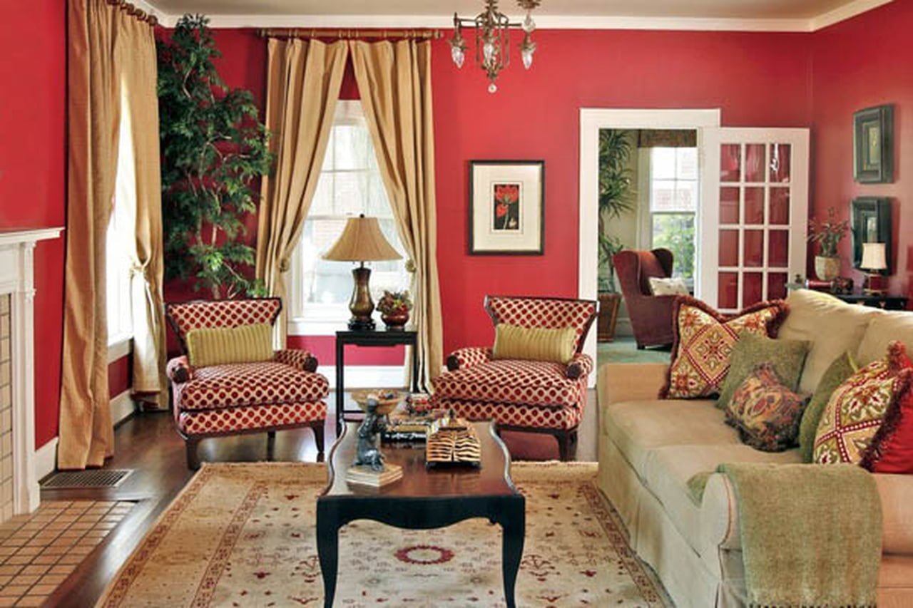 Гостиная в красных тонах