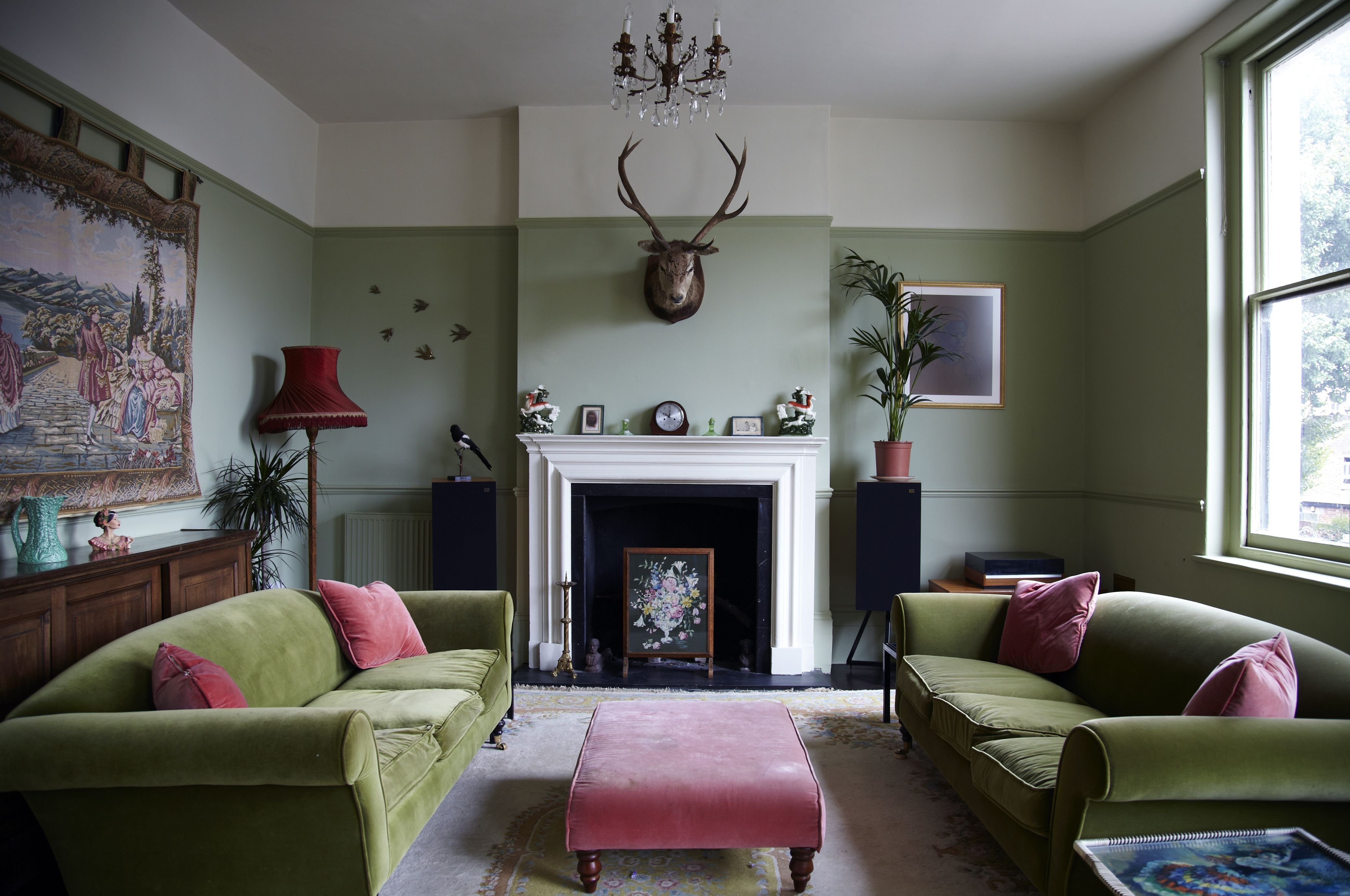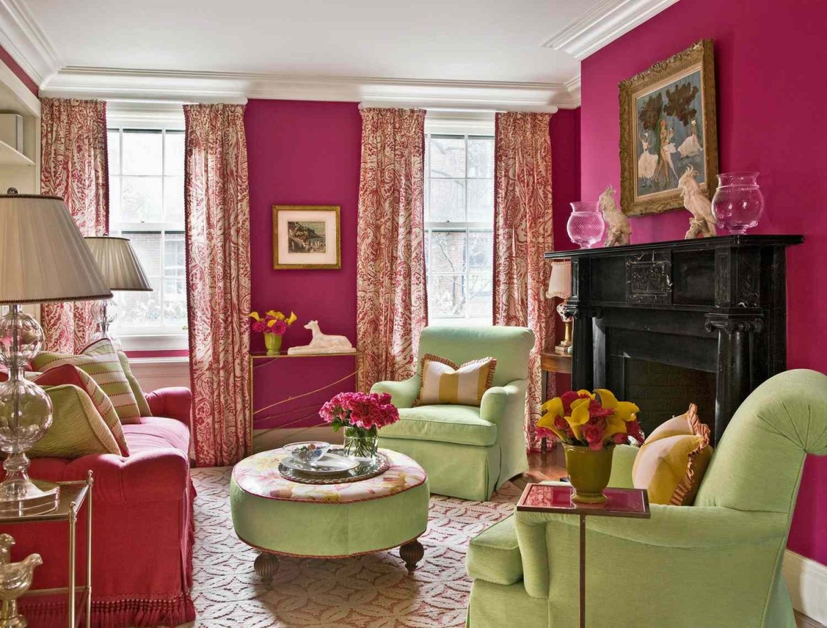 Сочетание розового и зеленого в интерьере