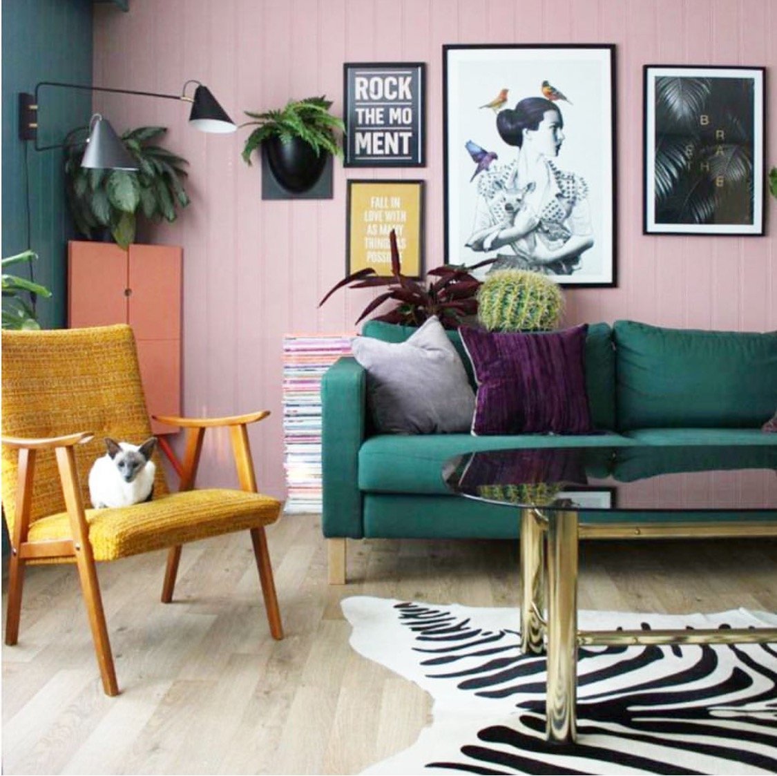 Изумрудный и розовый в интерьере