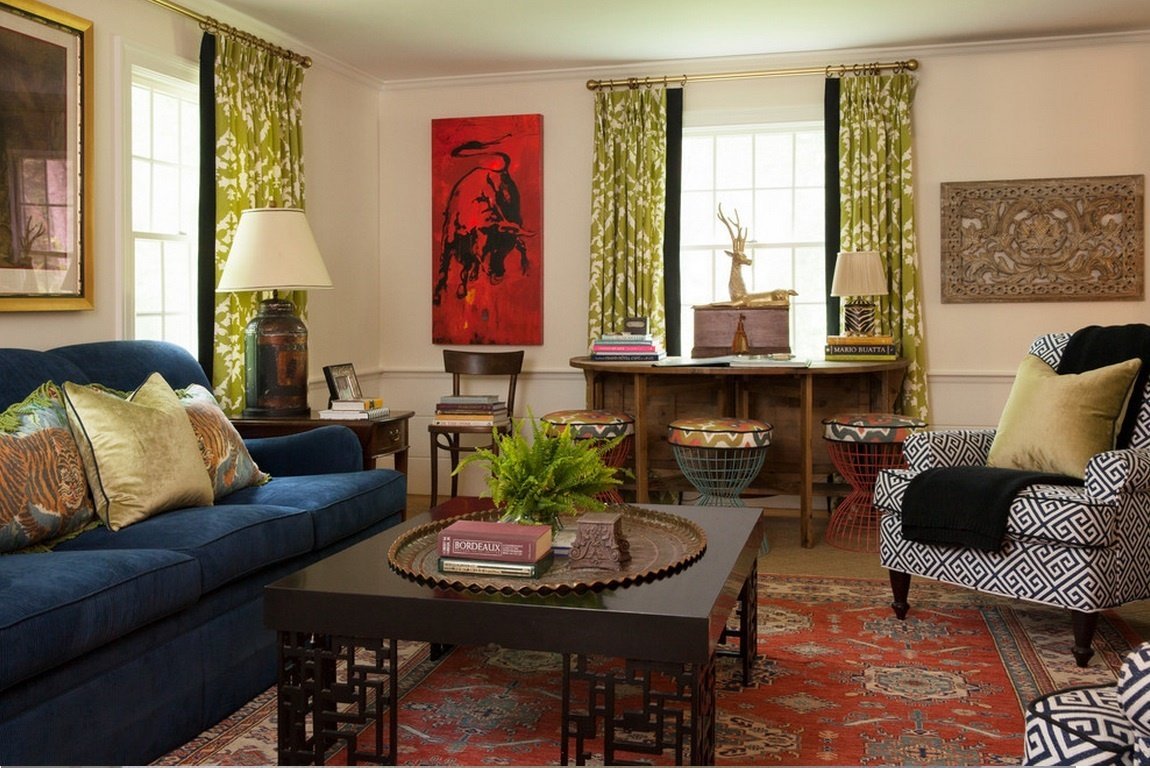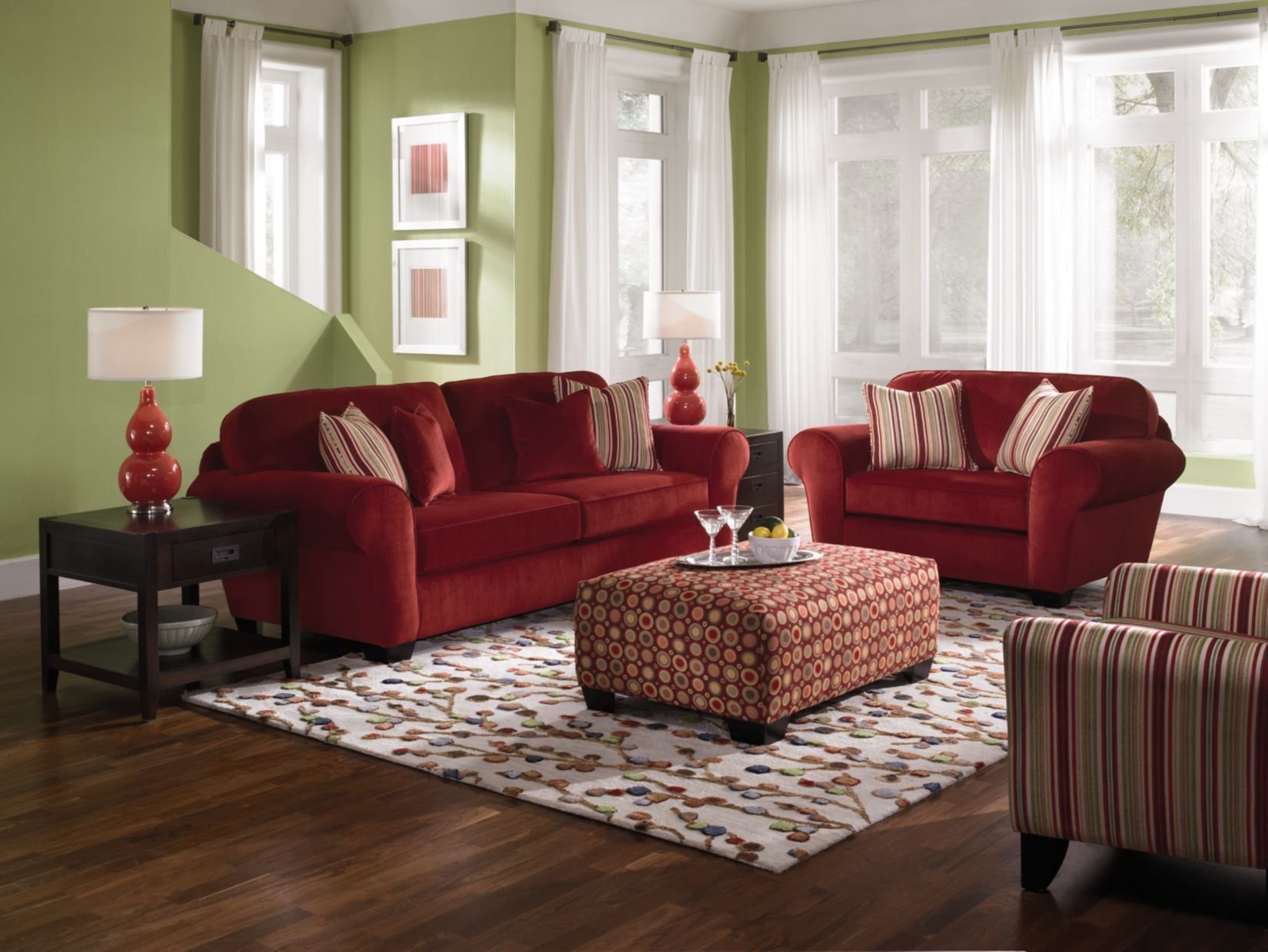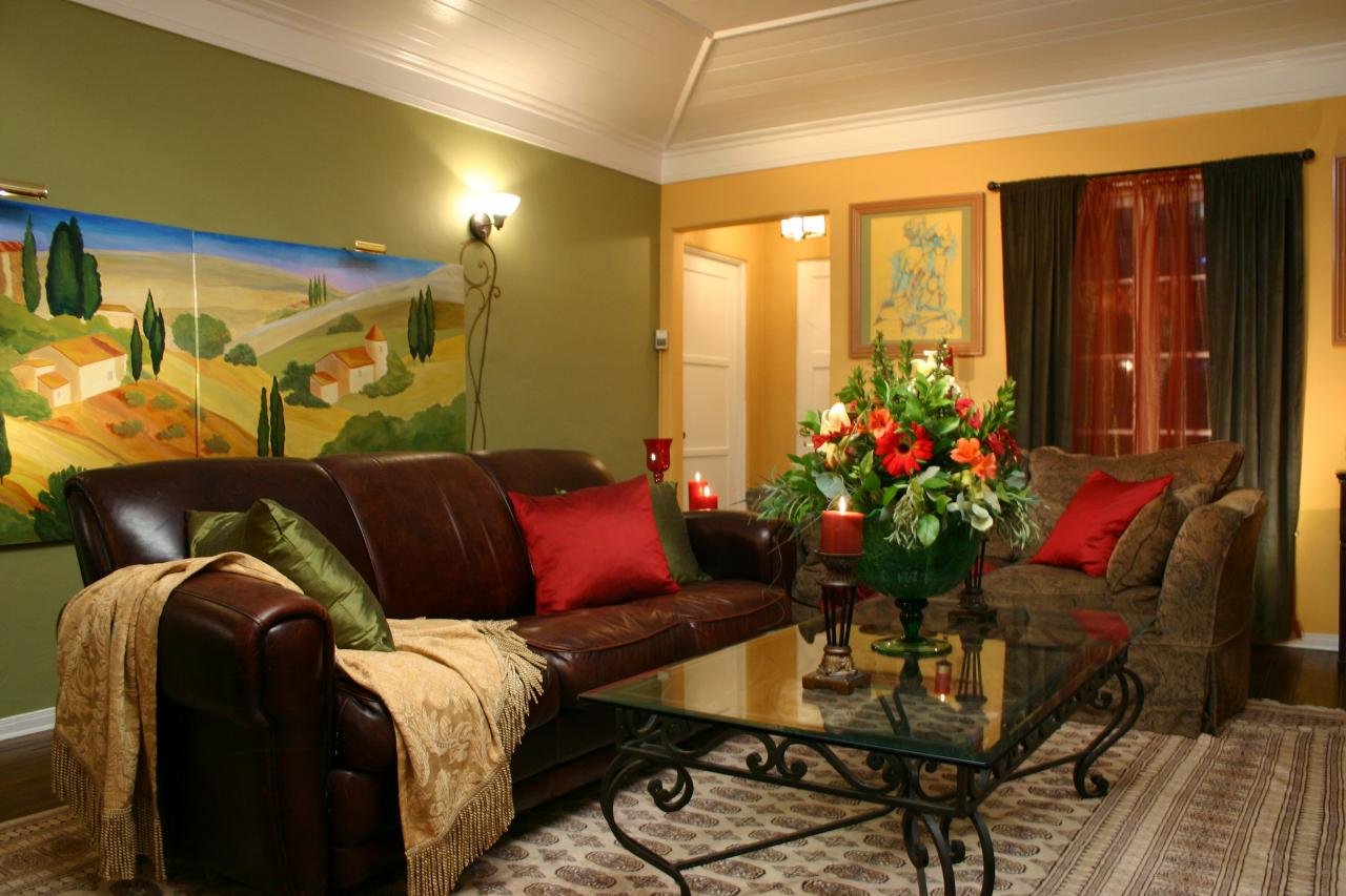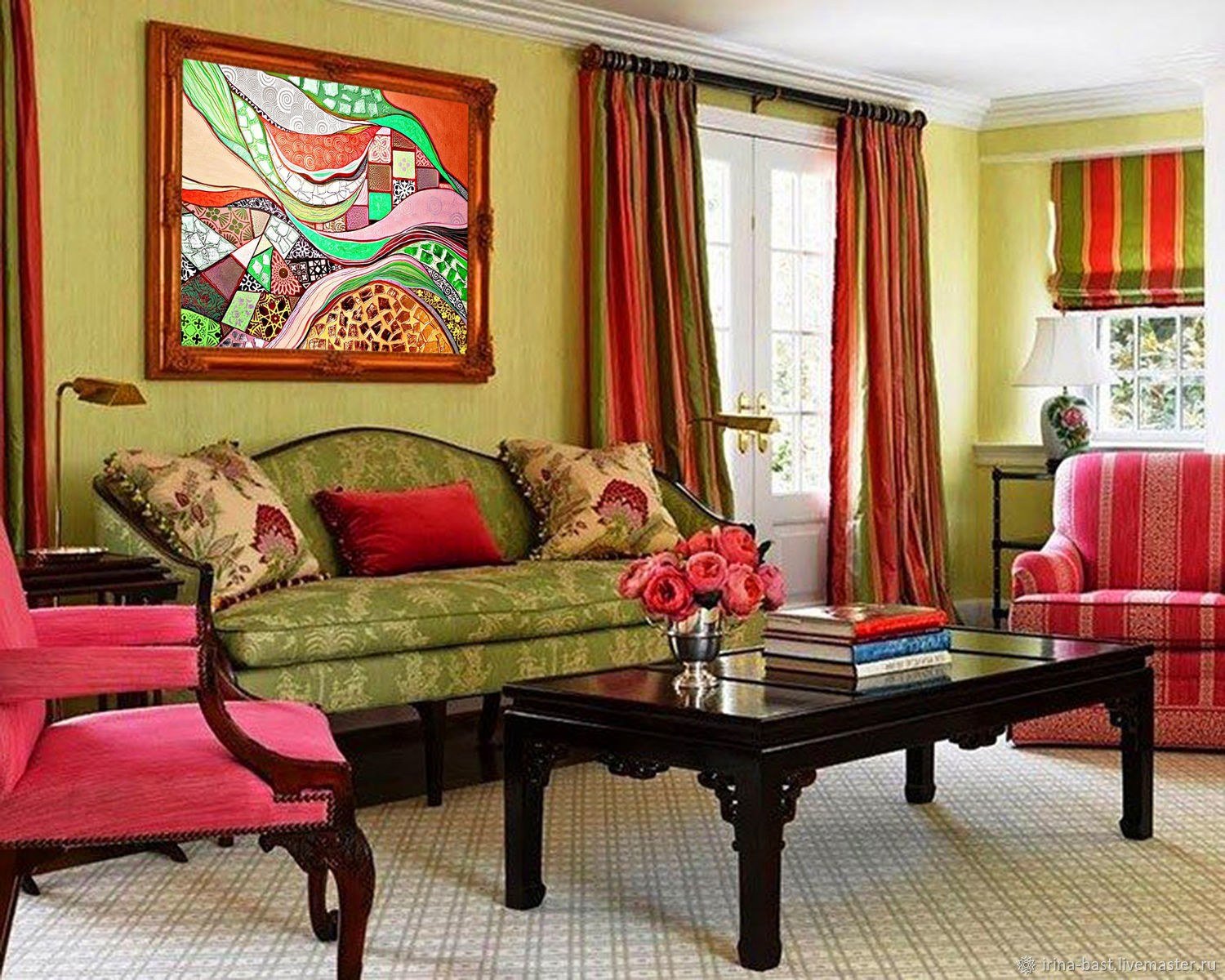 Гостиная в красно зеленых тонах
