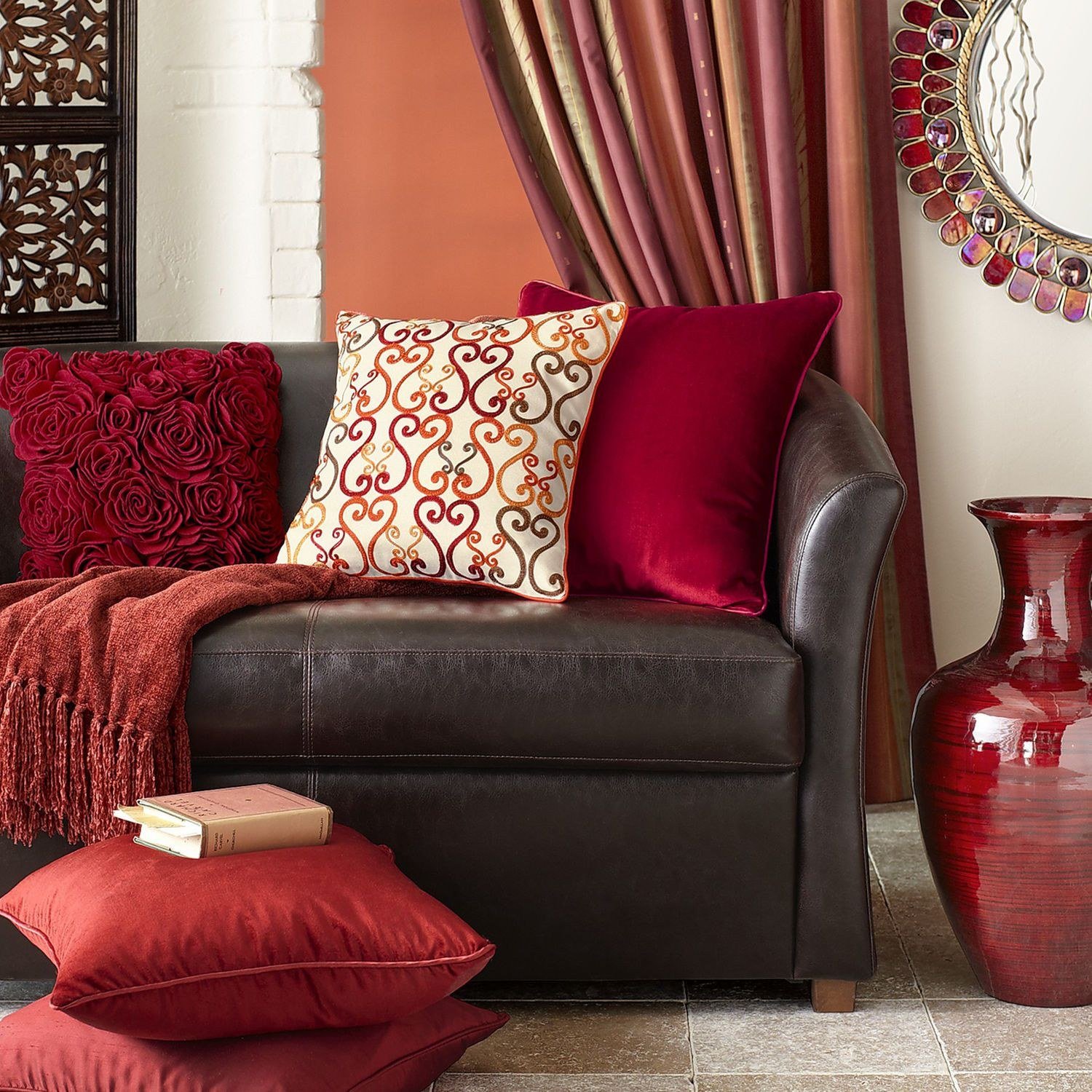 Бордовый диван в интерьере