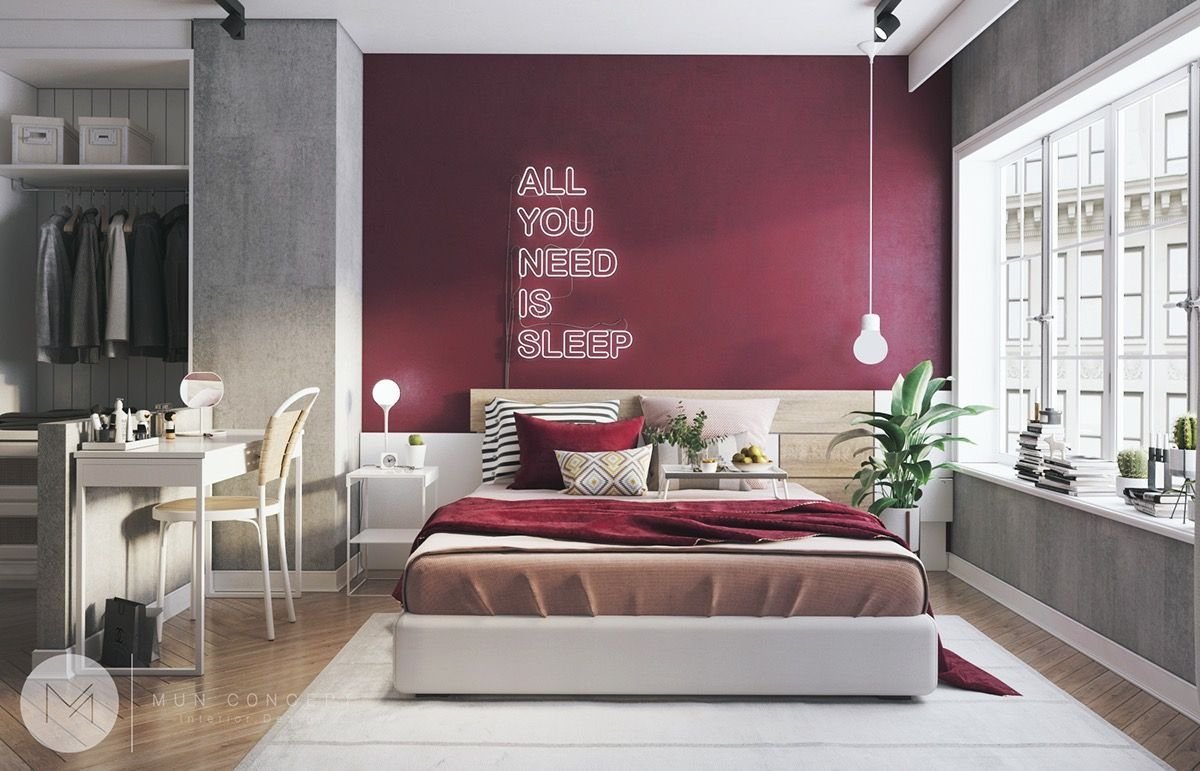 Спальни серые с бордовым
