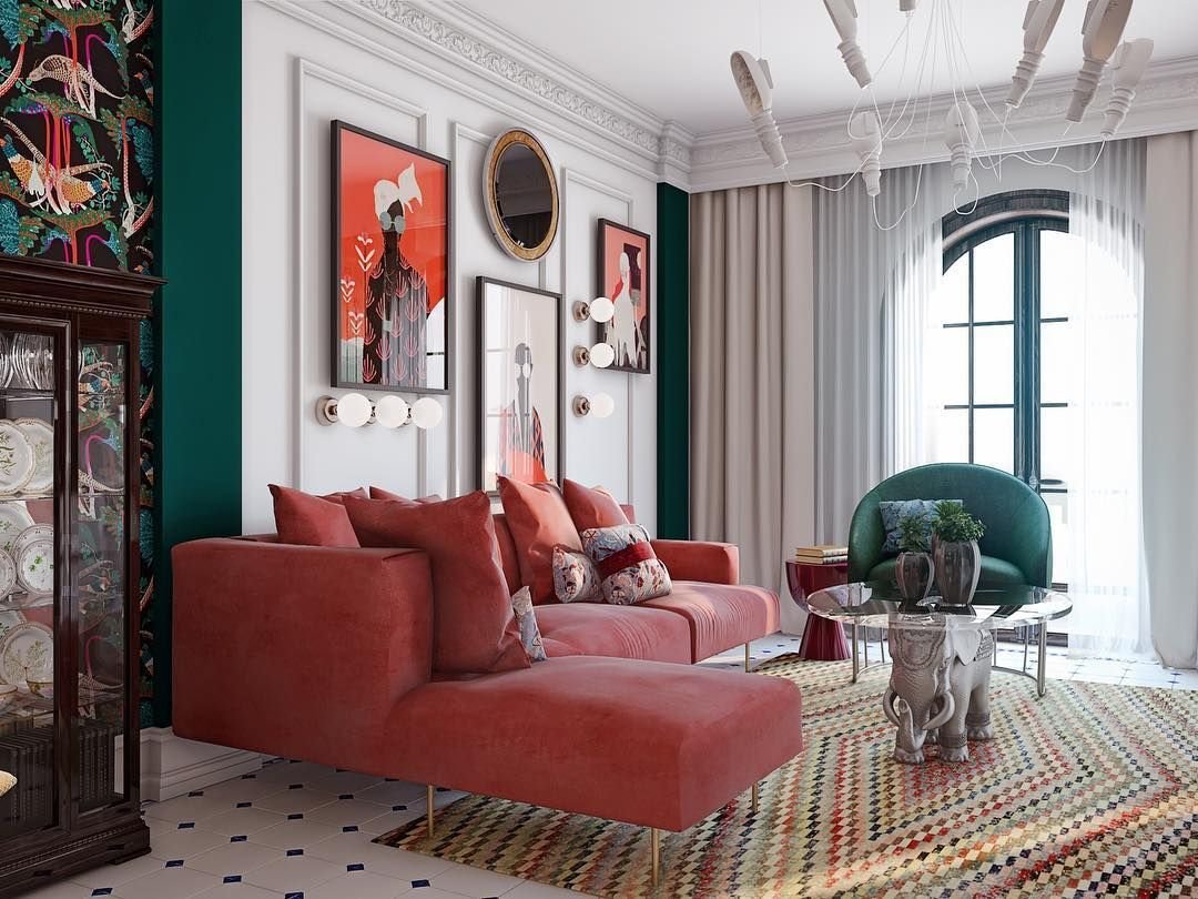 Сочетание красного и зеленого в интерьере