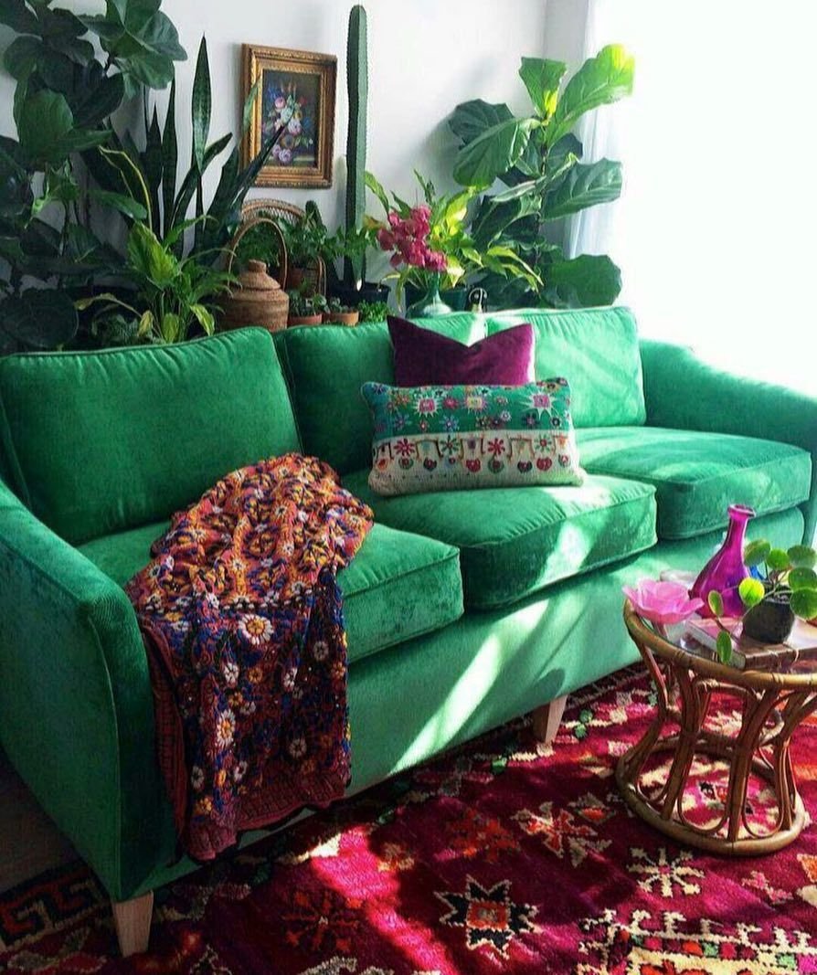 Зеленый диван в интерьере
