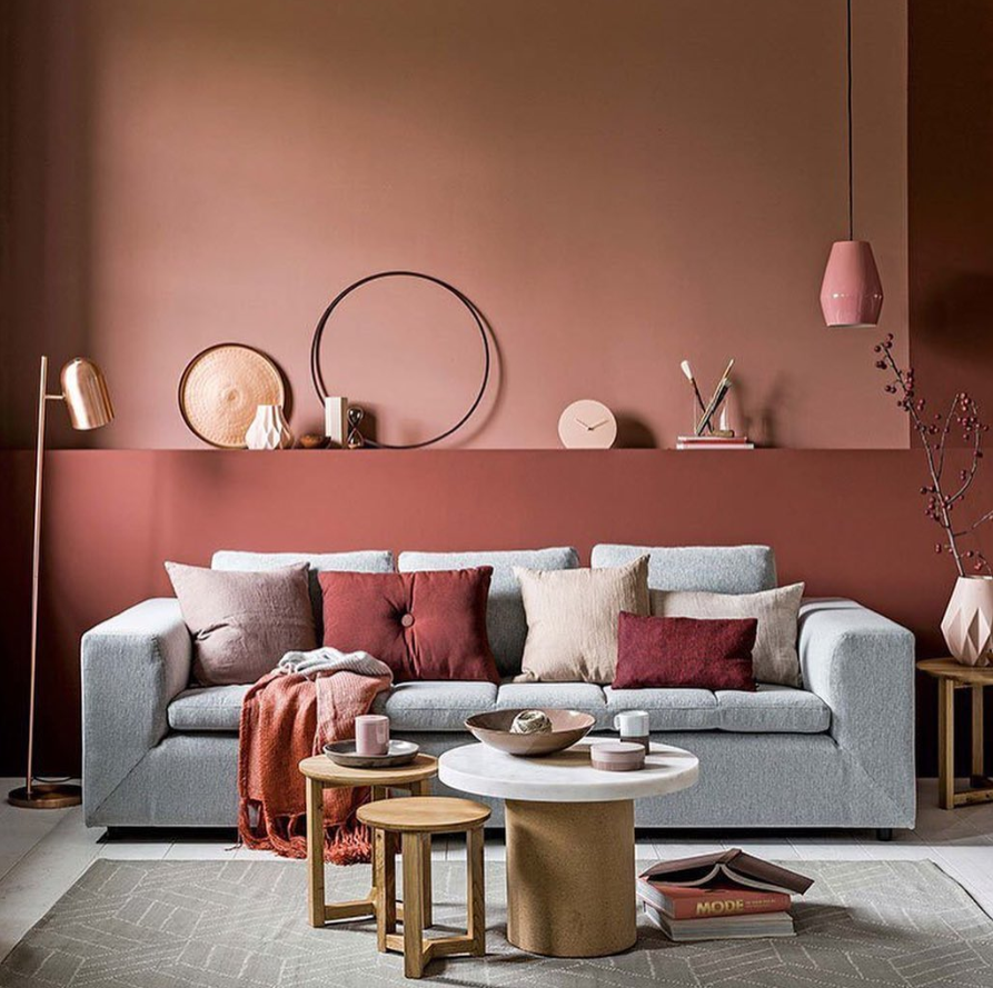 Гостиная в терракотовых тонах