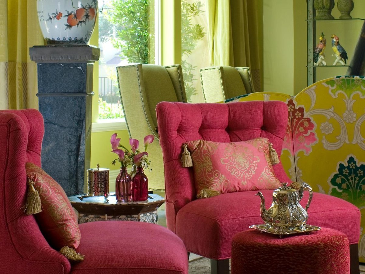 Красно зеленый интерьер