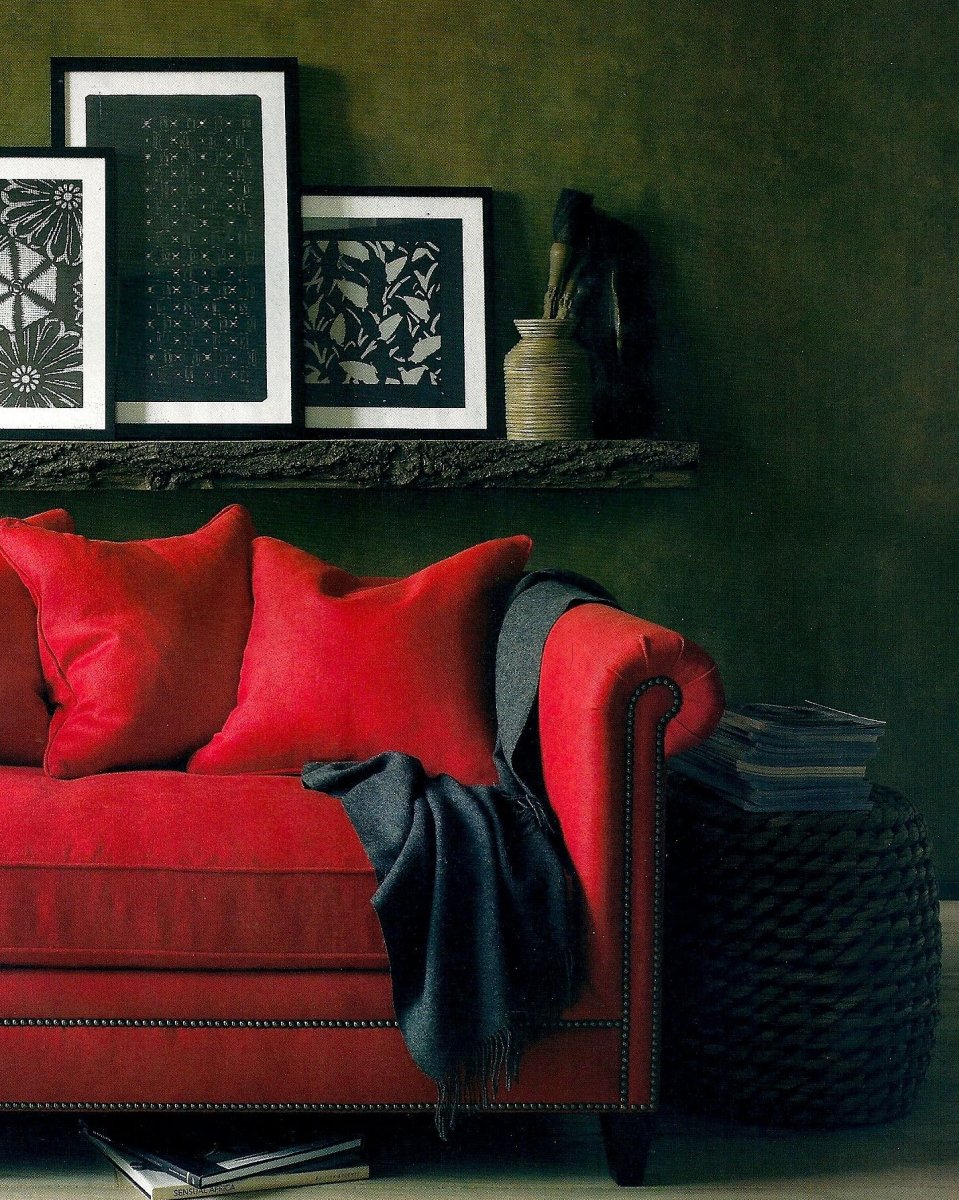 Бордовый диван зеленые стены