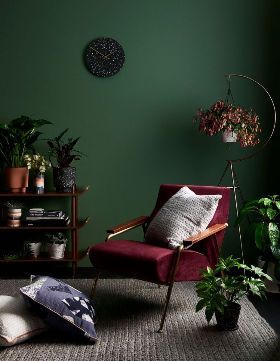 Зеленый и бордовый в интерьере