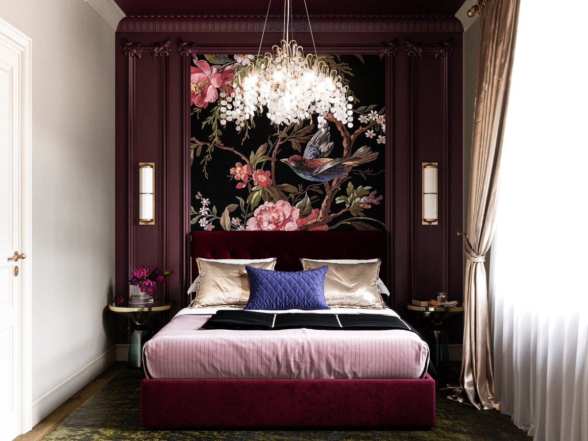 Бордовые стены в интерьере