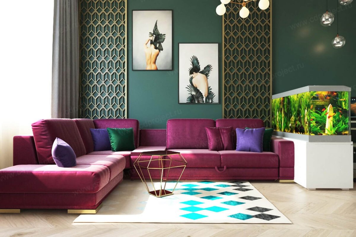 Сочетание бордового и зеленого в интерьере