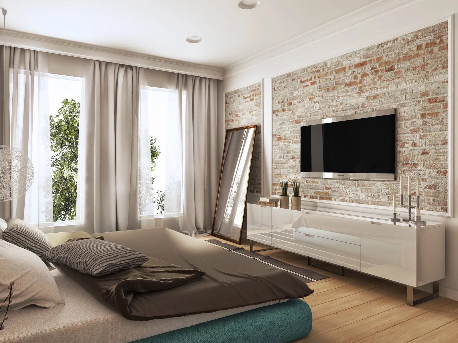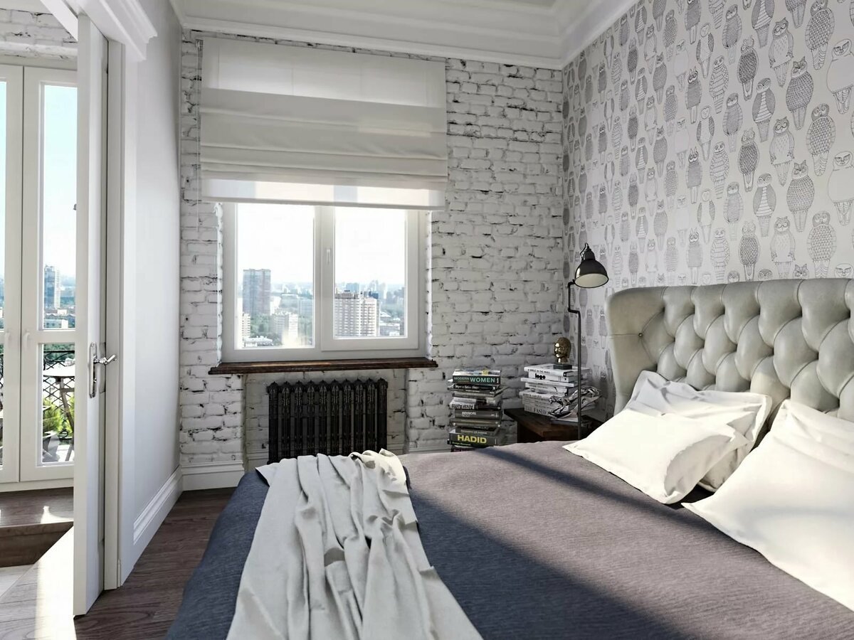 Белый кирпич в спальне