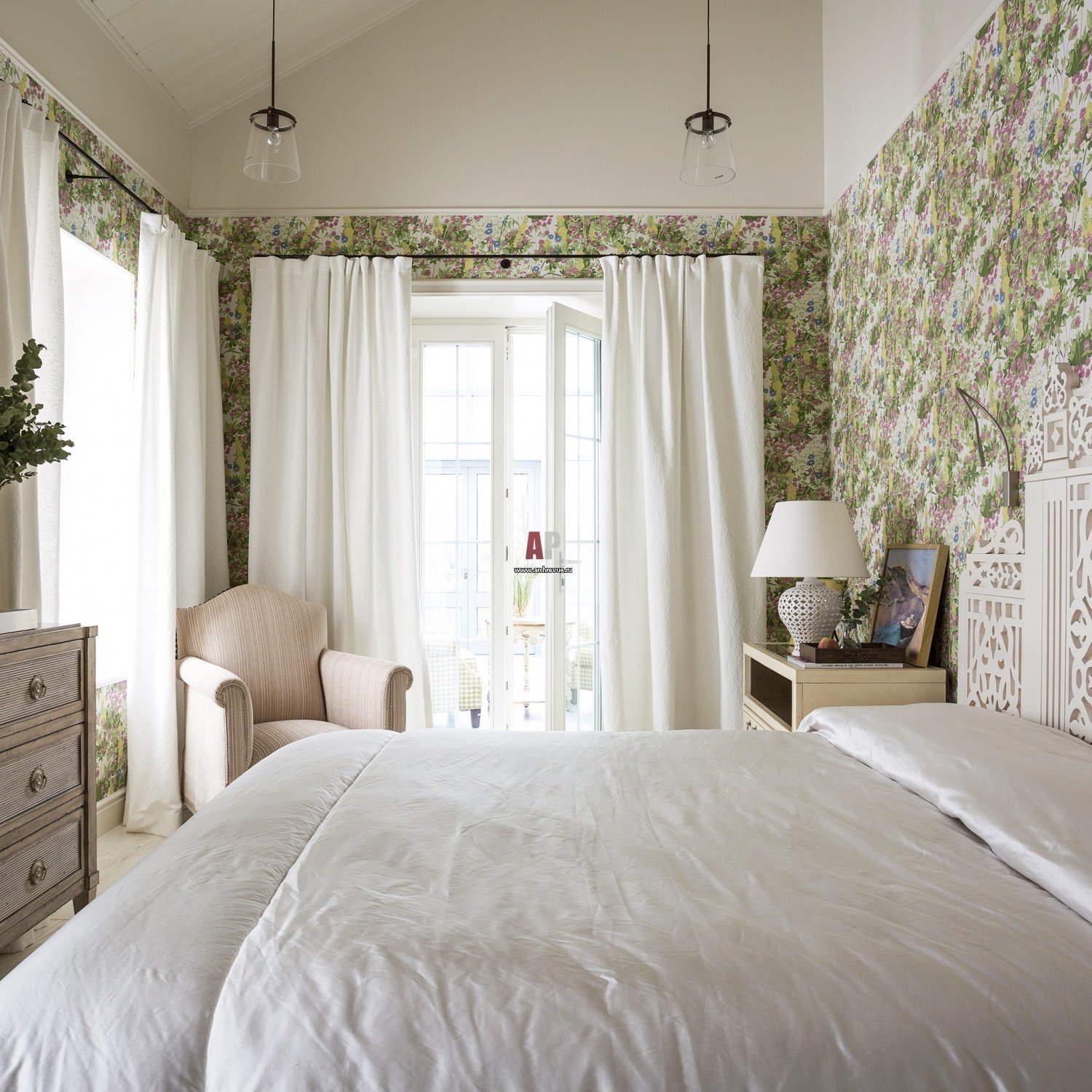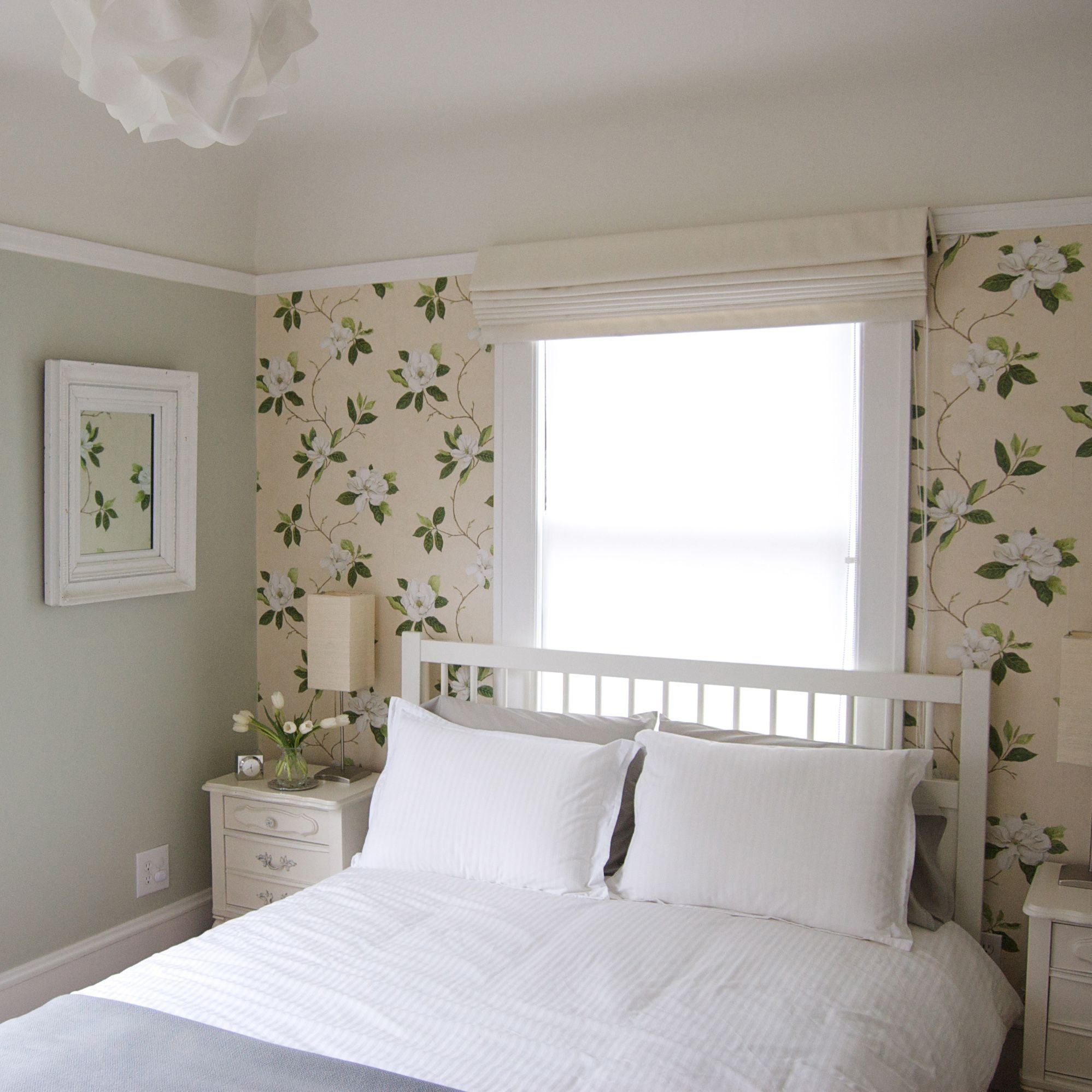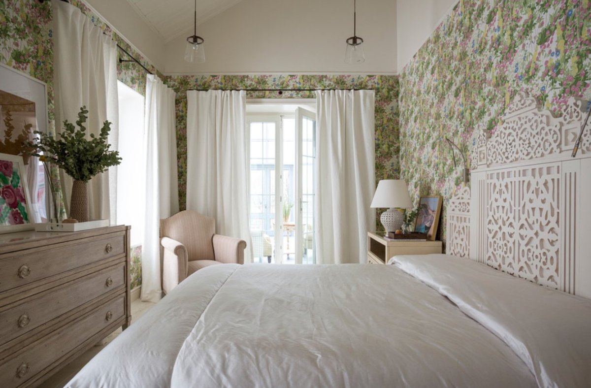 Цветочные обои в спальне