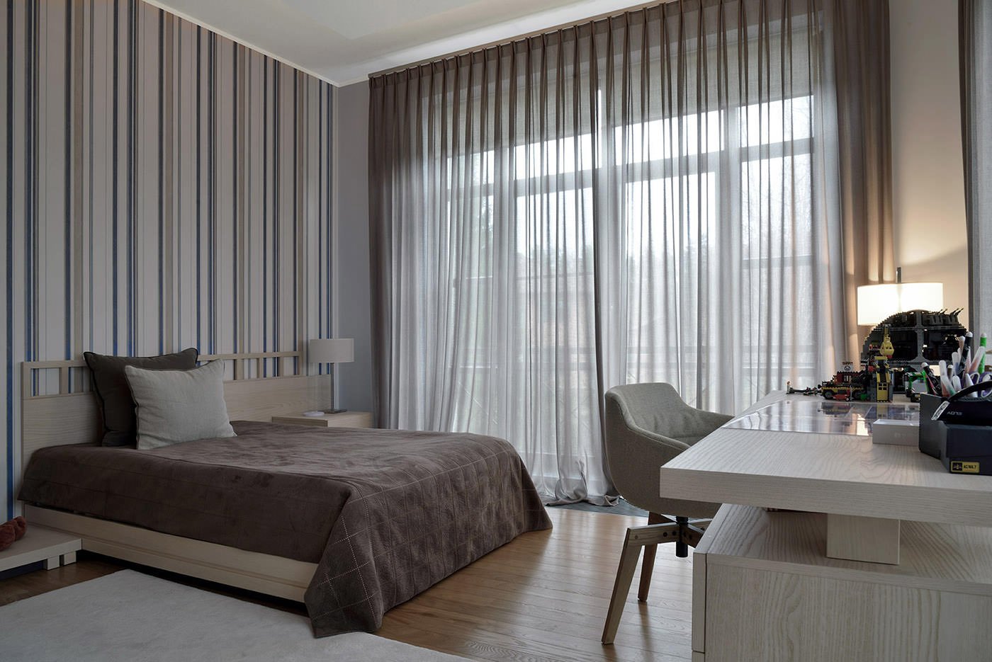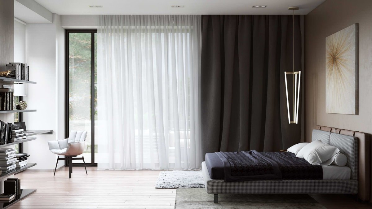 Шторы в интерьере спальни в современном стиле