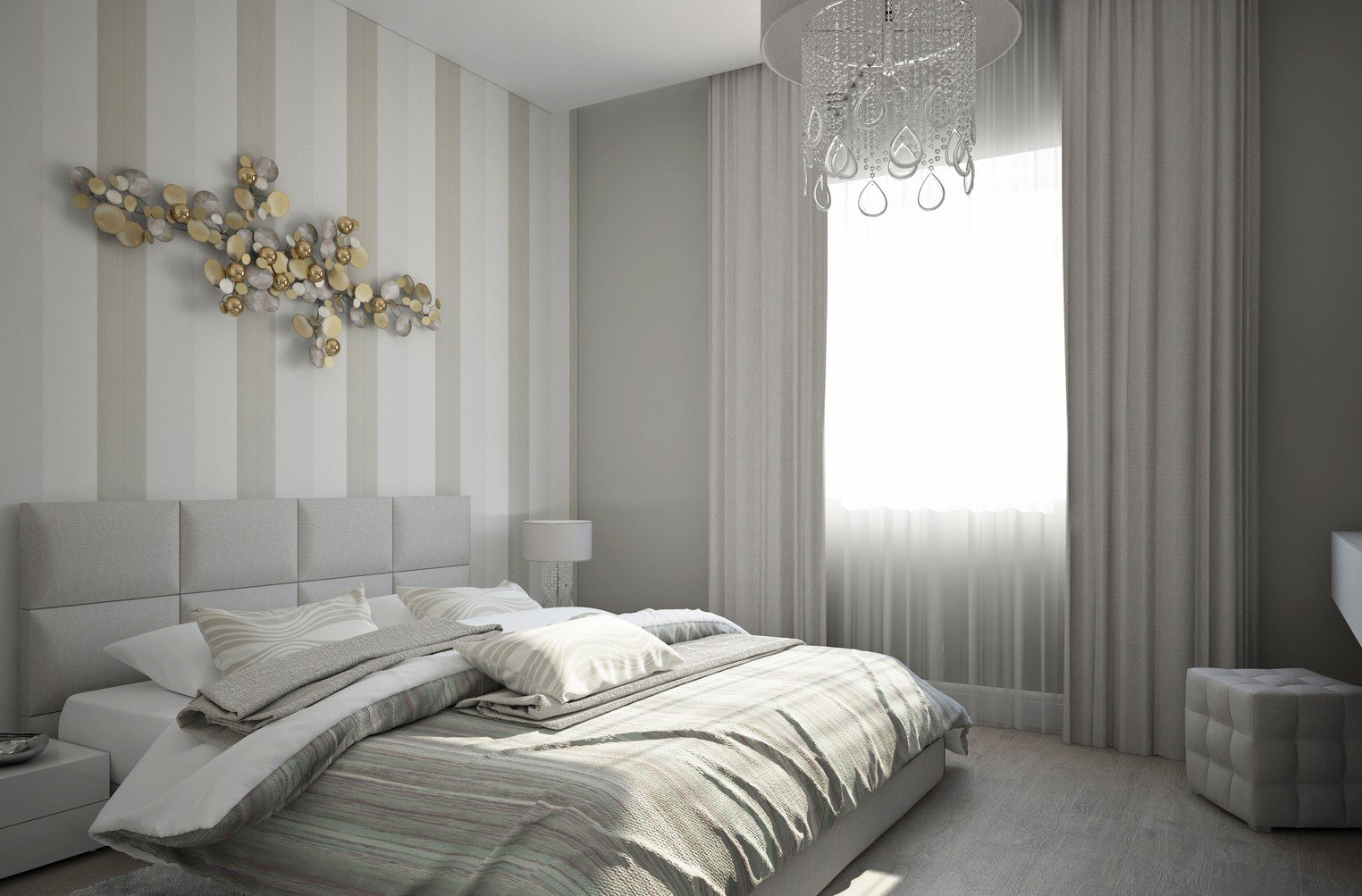 Спальня в светло серых тонах