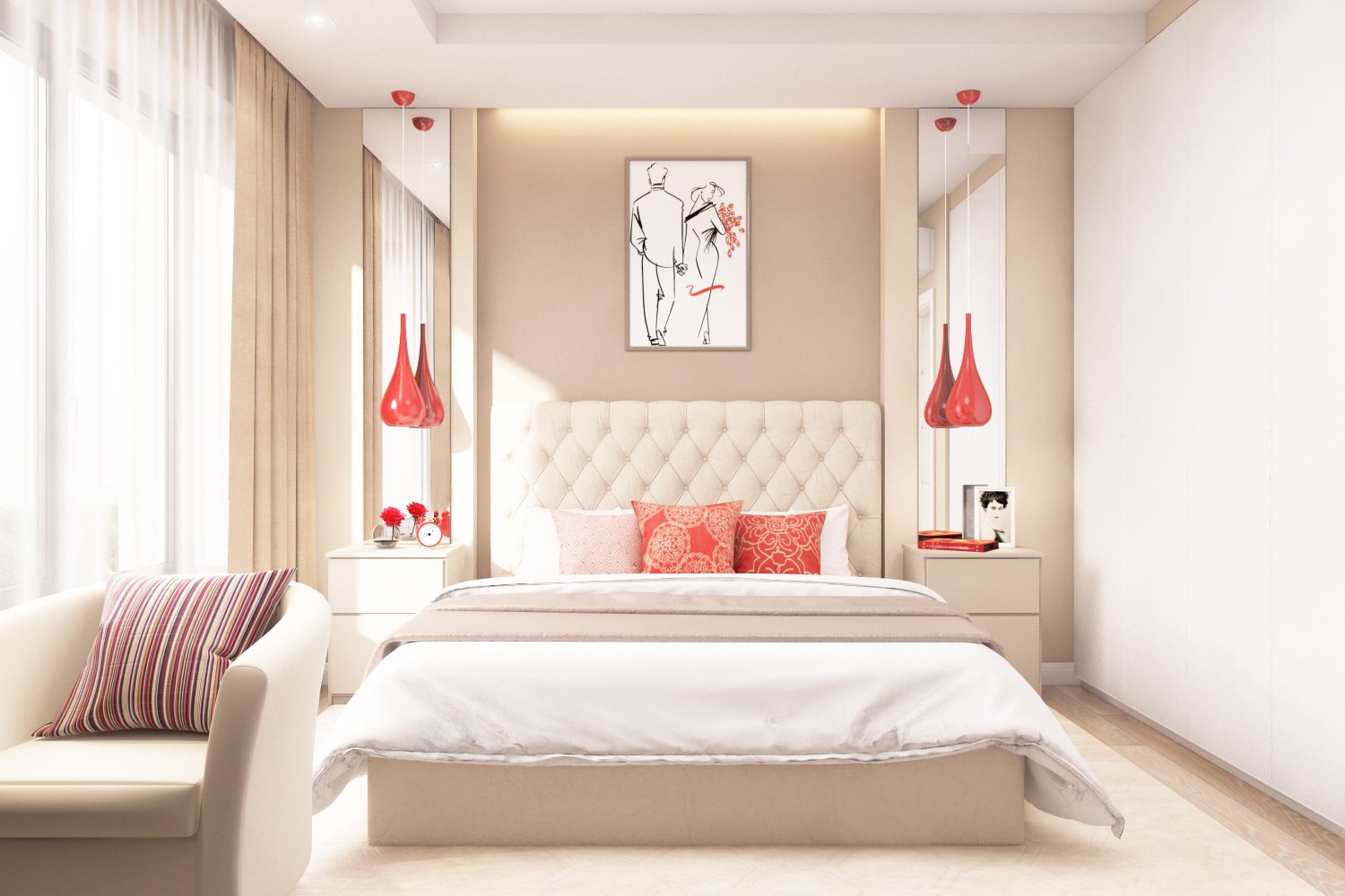 Красно белая спальня