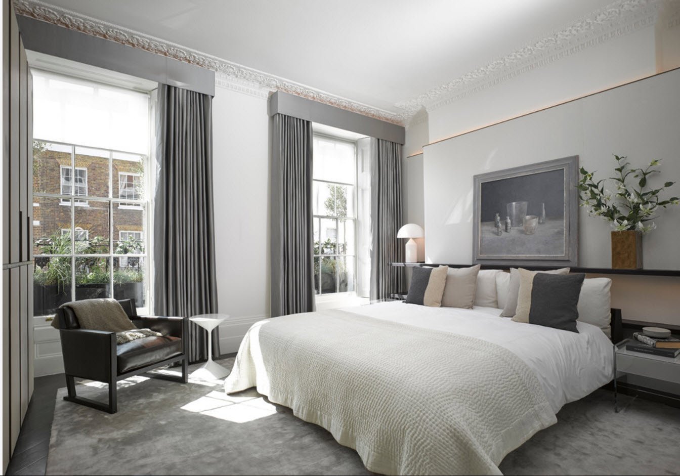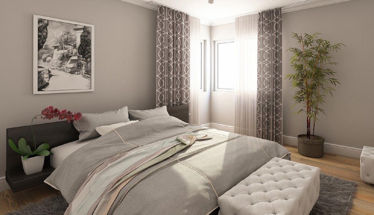 Серые шторы в спальне