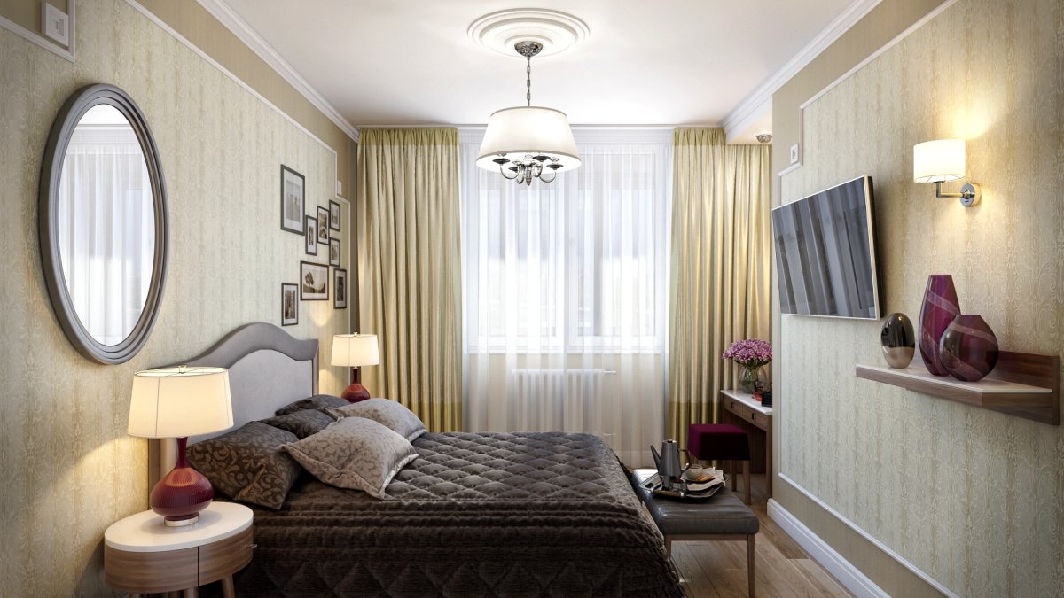 Интерьер спальни в хрущевке с люстрой