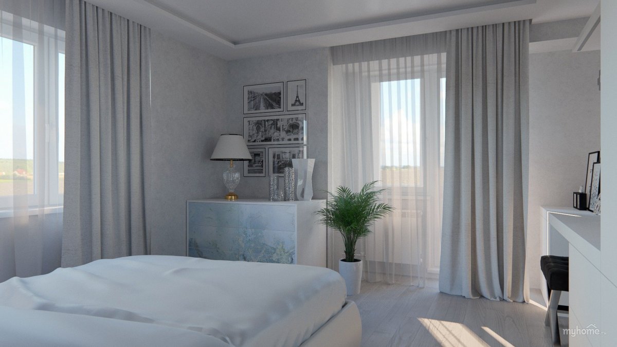 Светлая спальня с двумя окнами