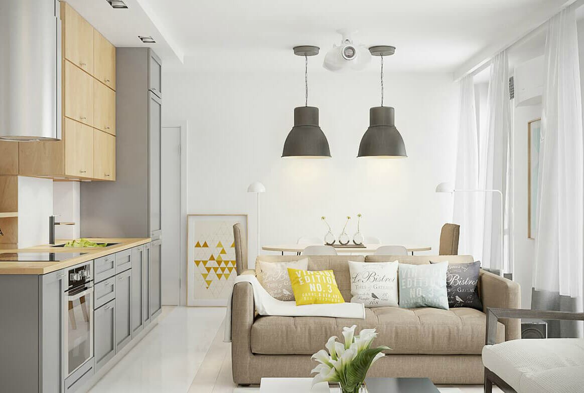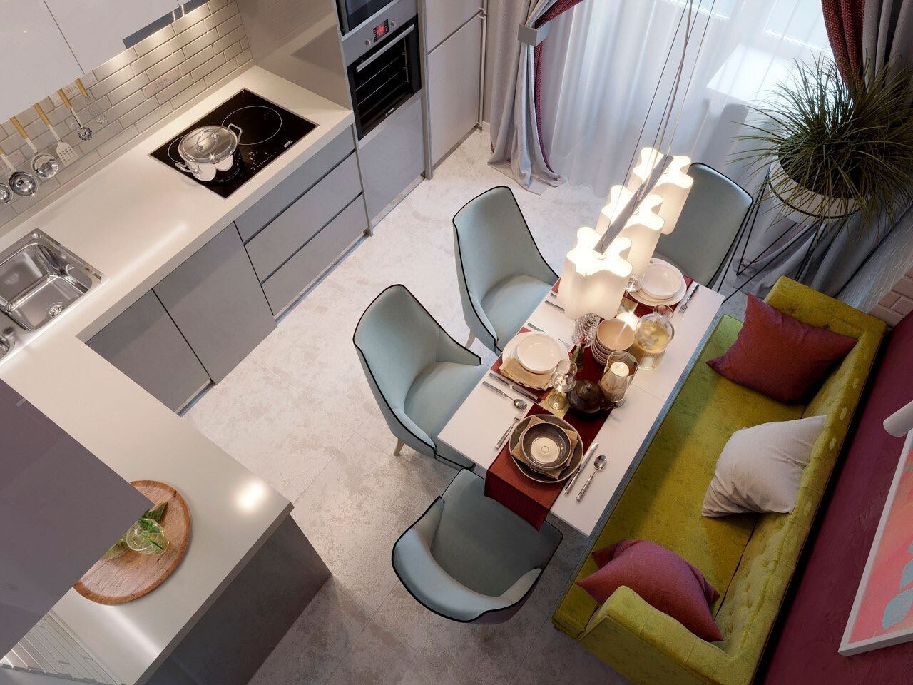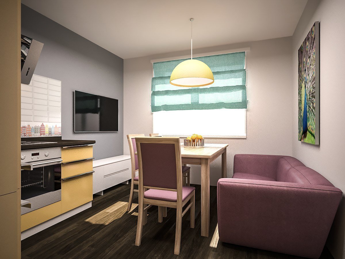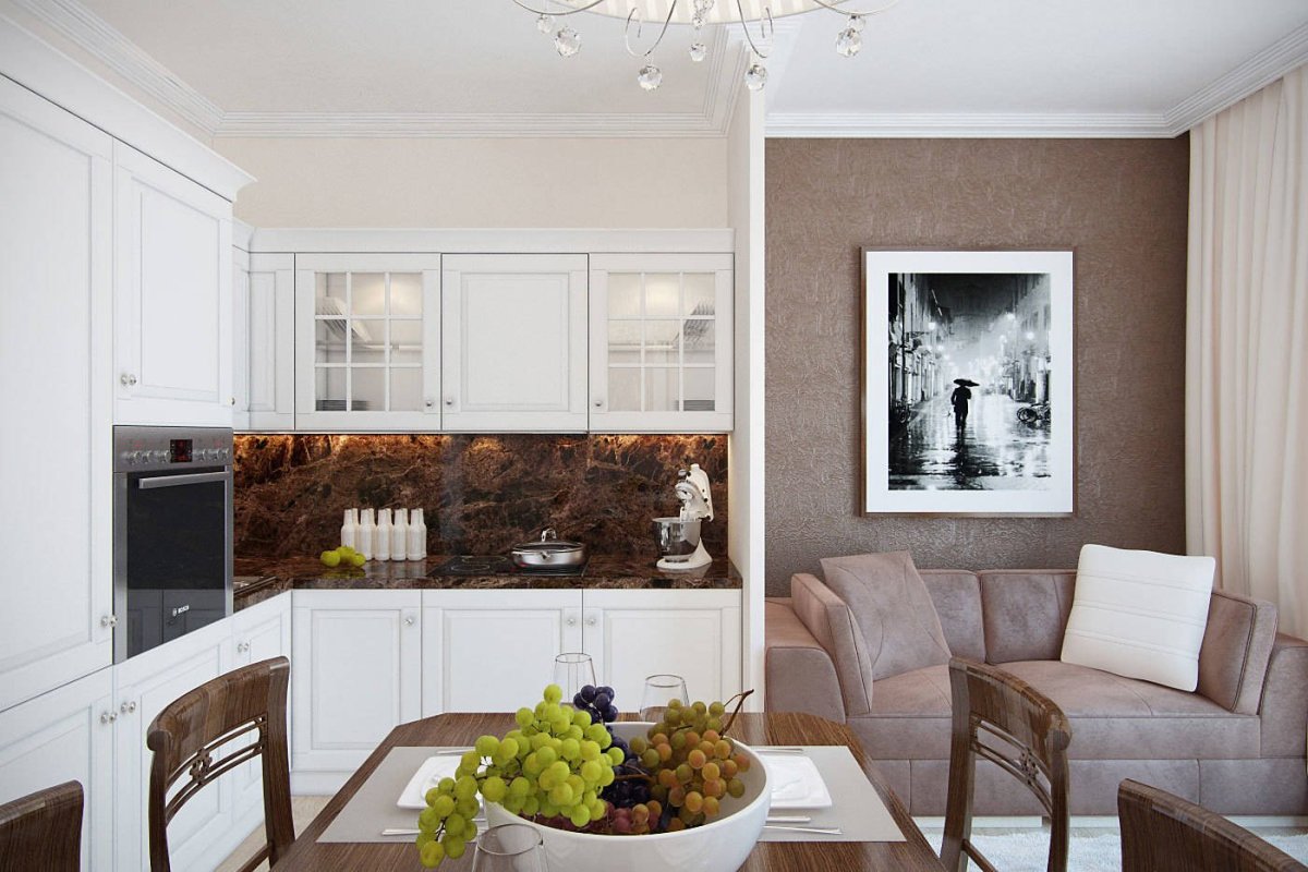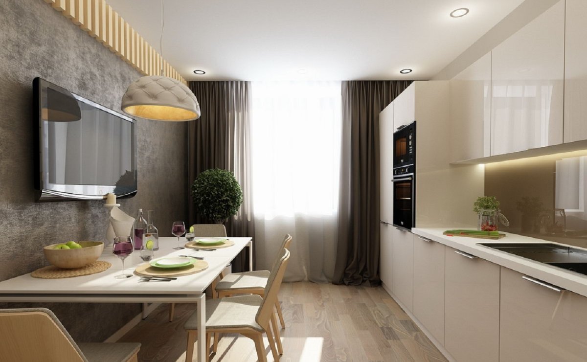 Кухня с гостинной 14кв м интерьер планировка прямоугольная