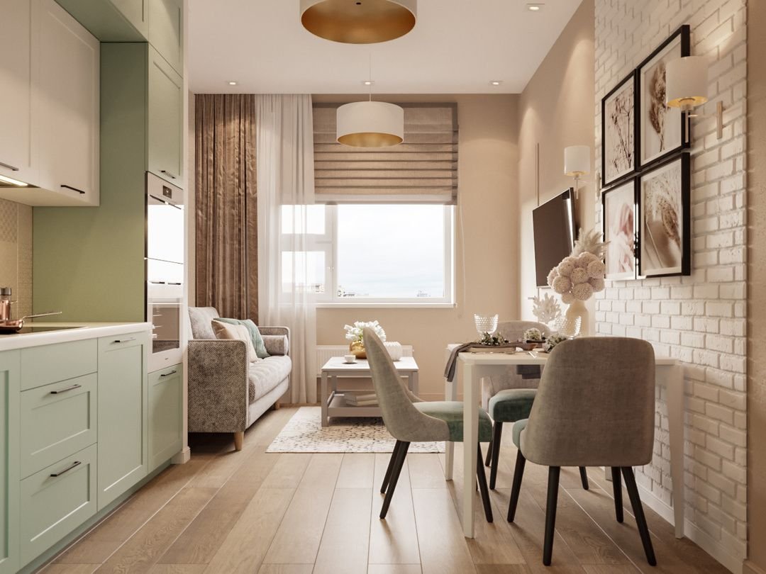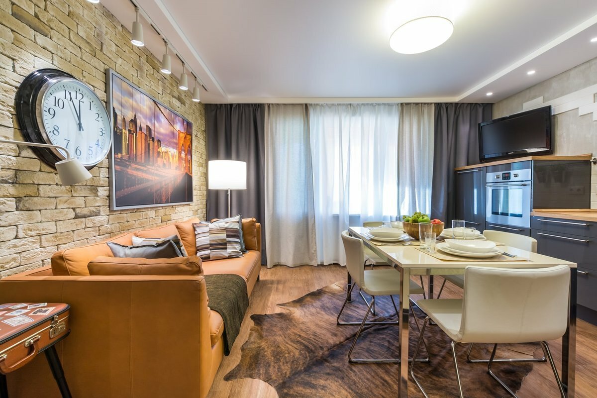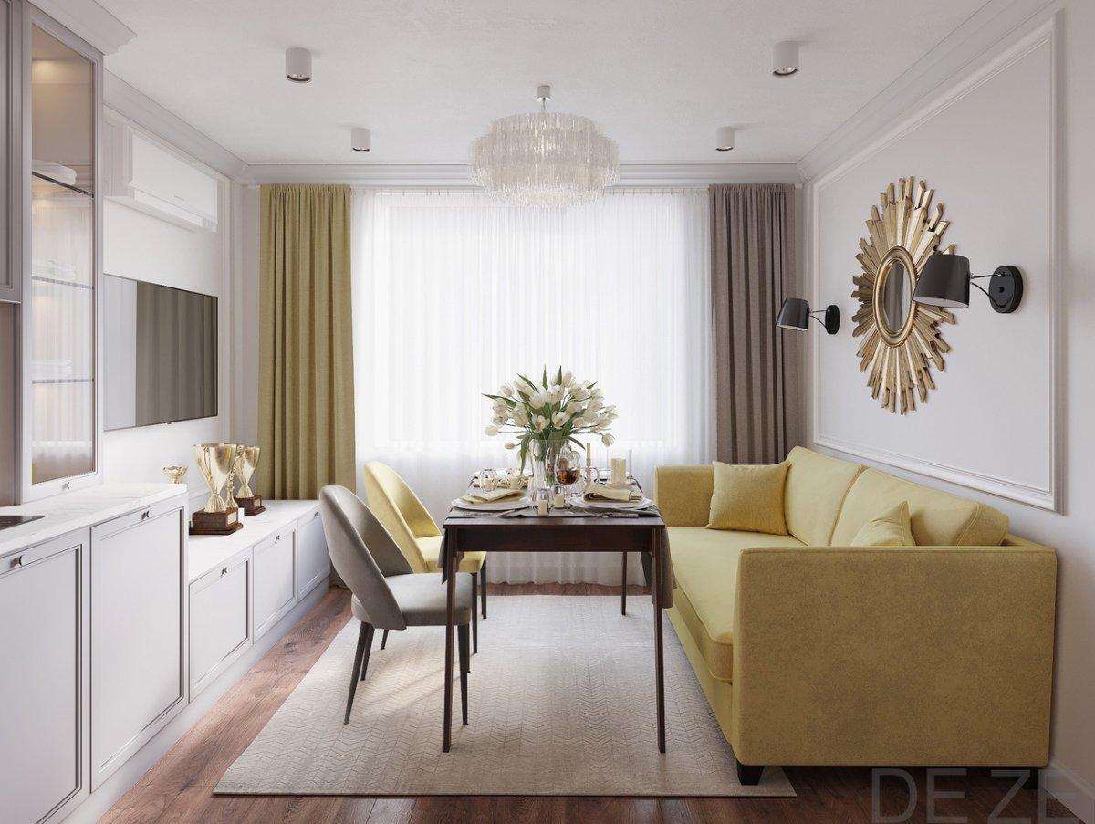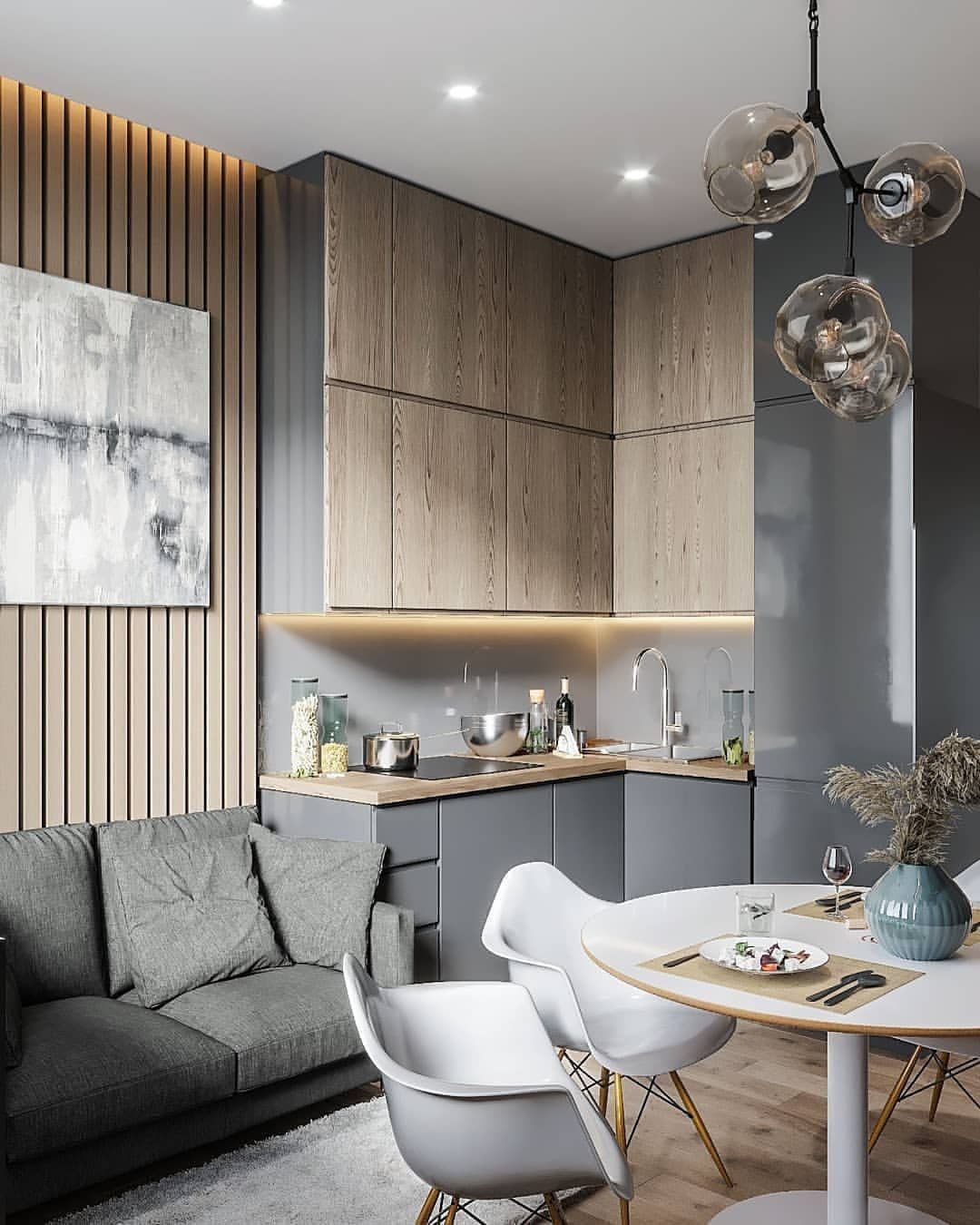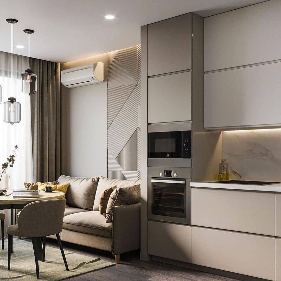 Кухня с гостинной 14кв м интерьер планировка прямоугольная