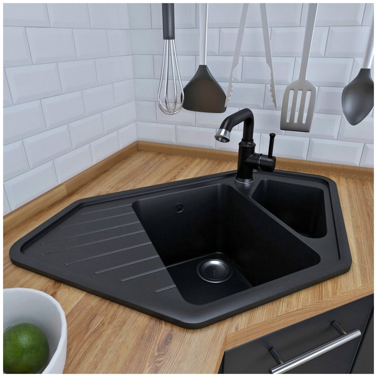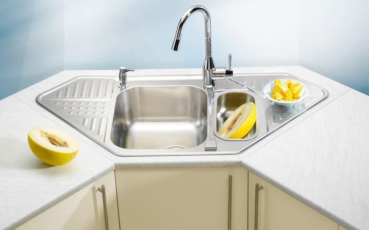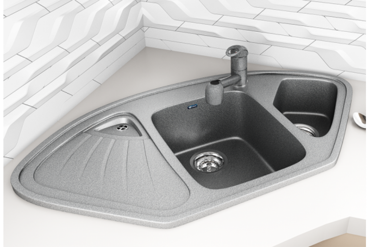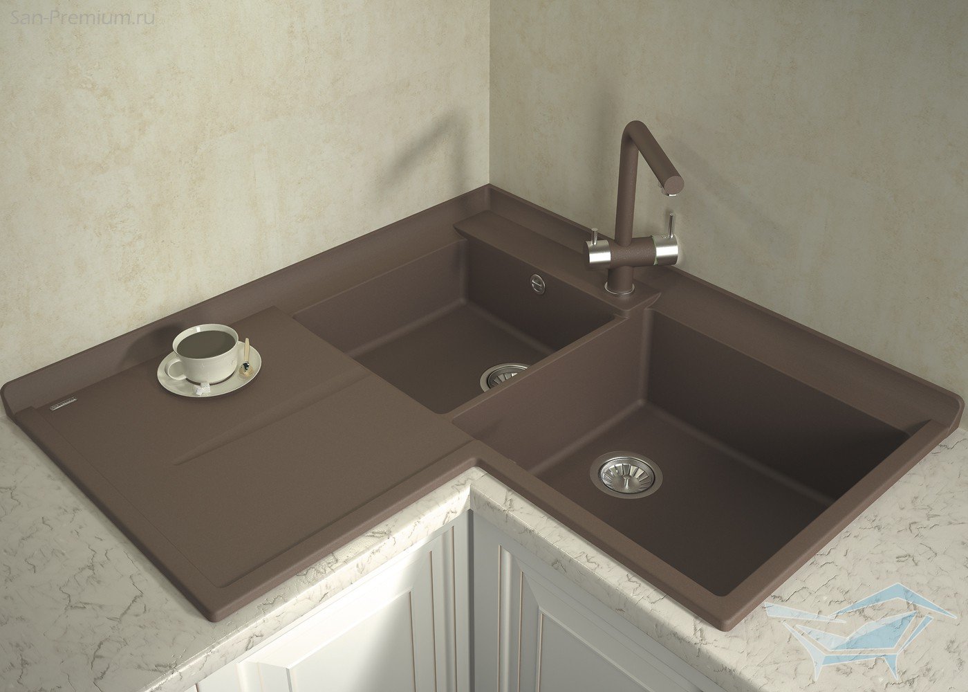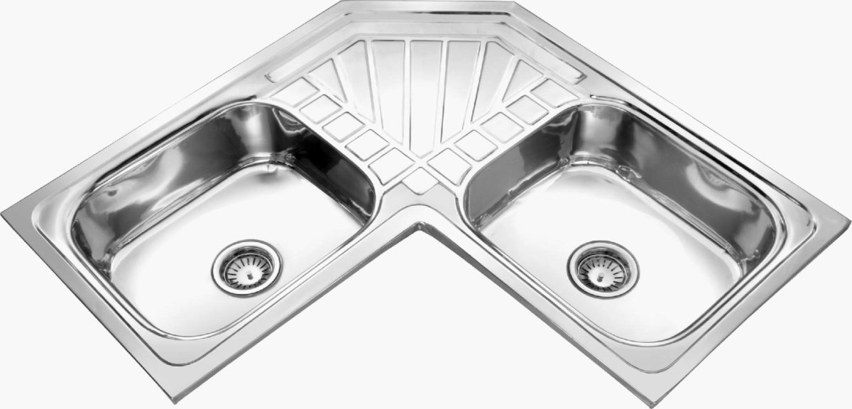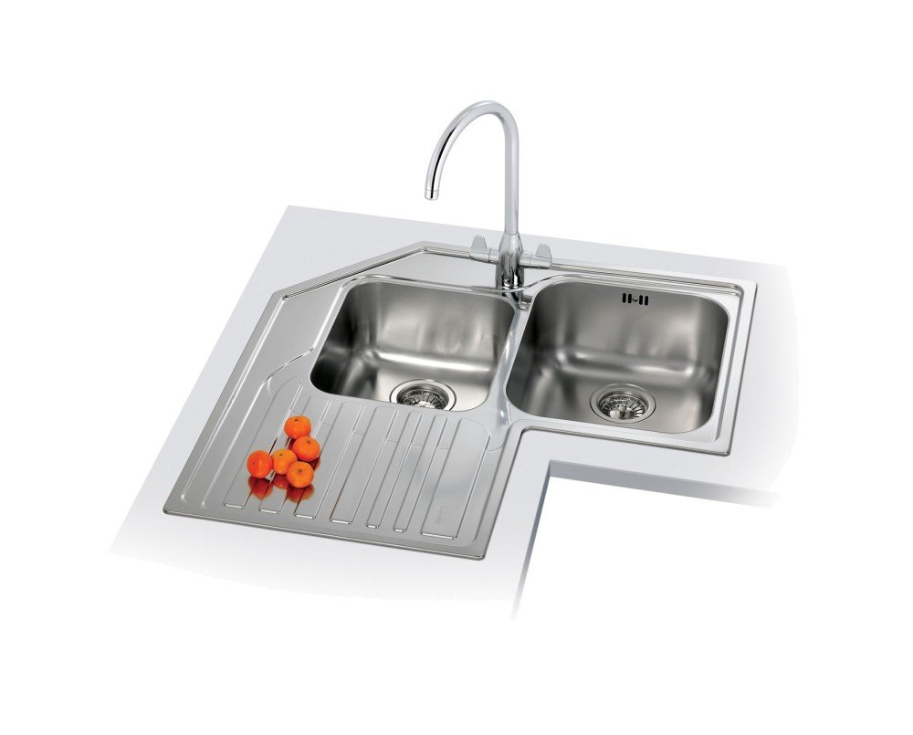 Мойка 8383 врезная угловая 830*830, нержавейка, 2 чаши, сушка