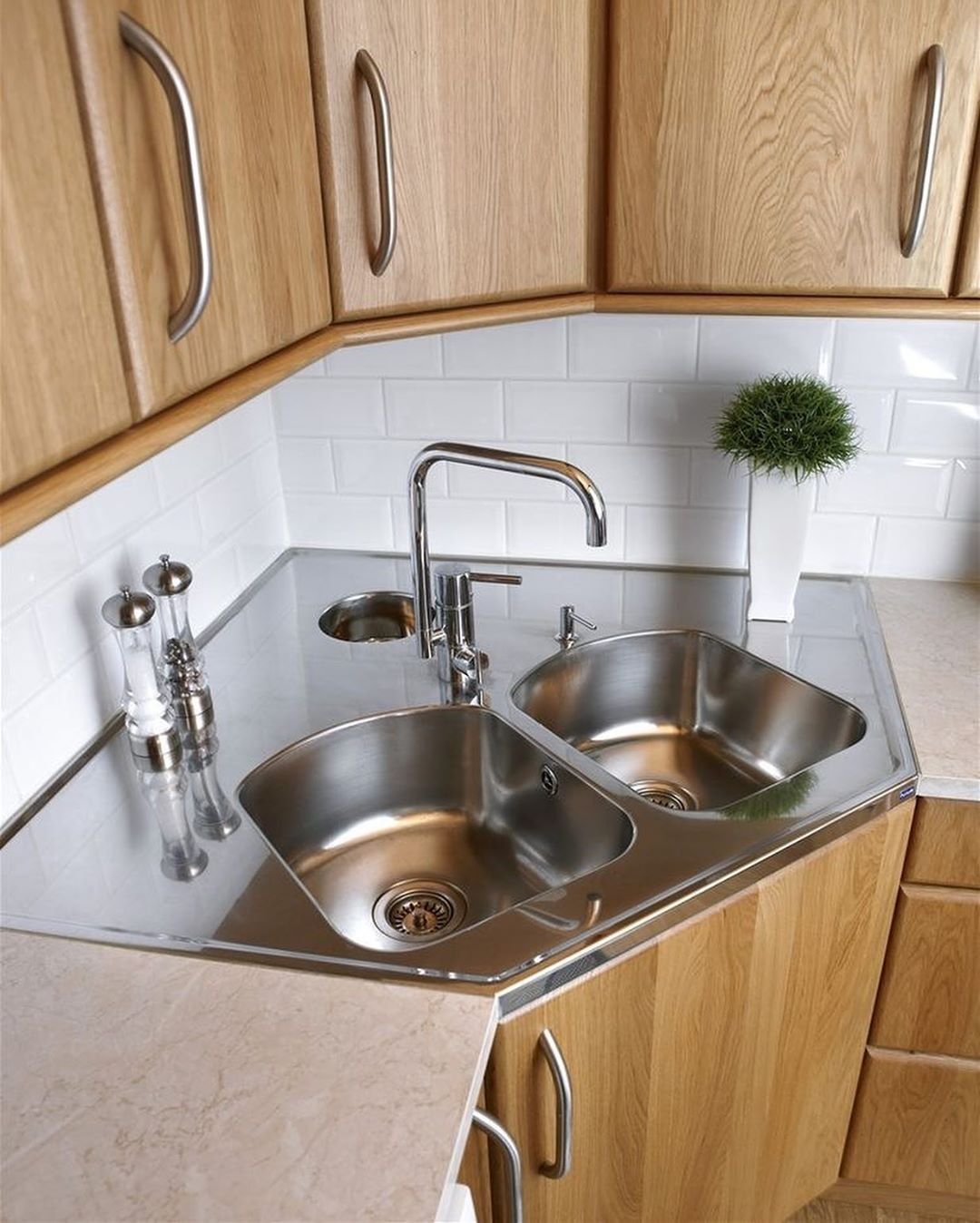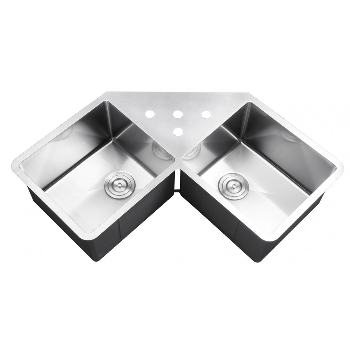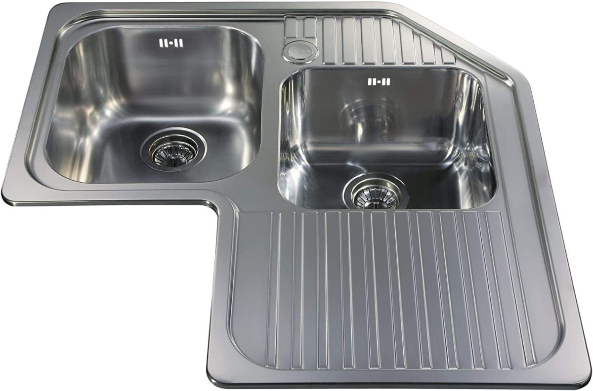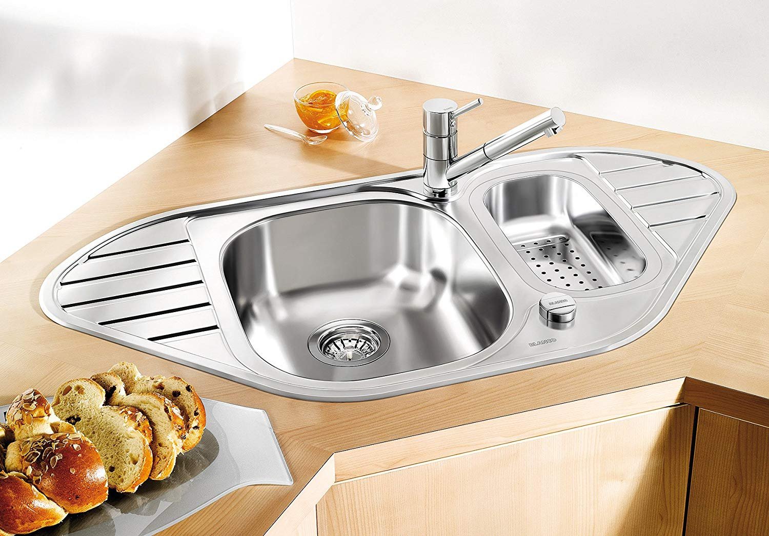 Мойка 8383 врезная угловая 830*830, нержавейка, 2 чаши, сушка