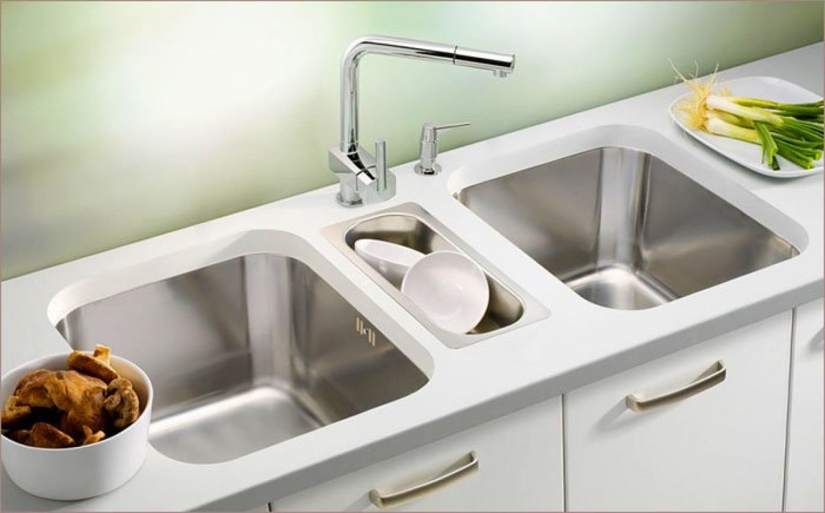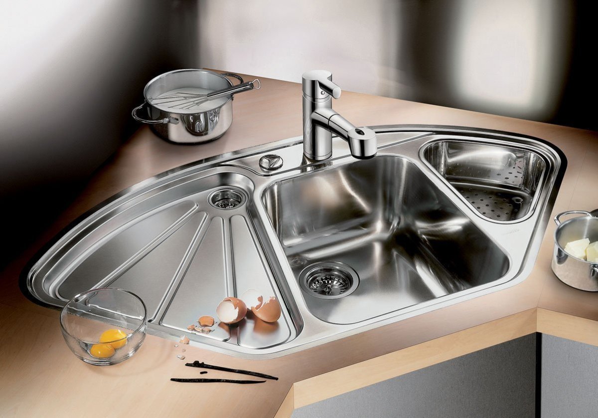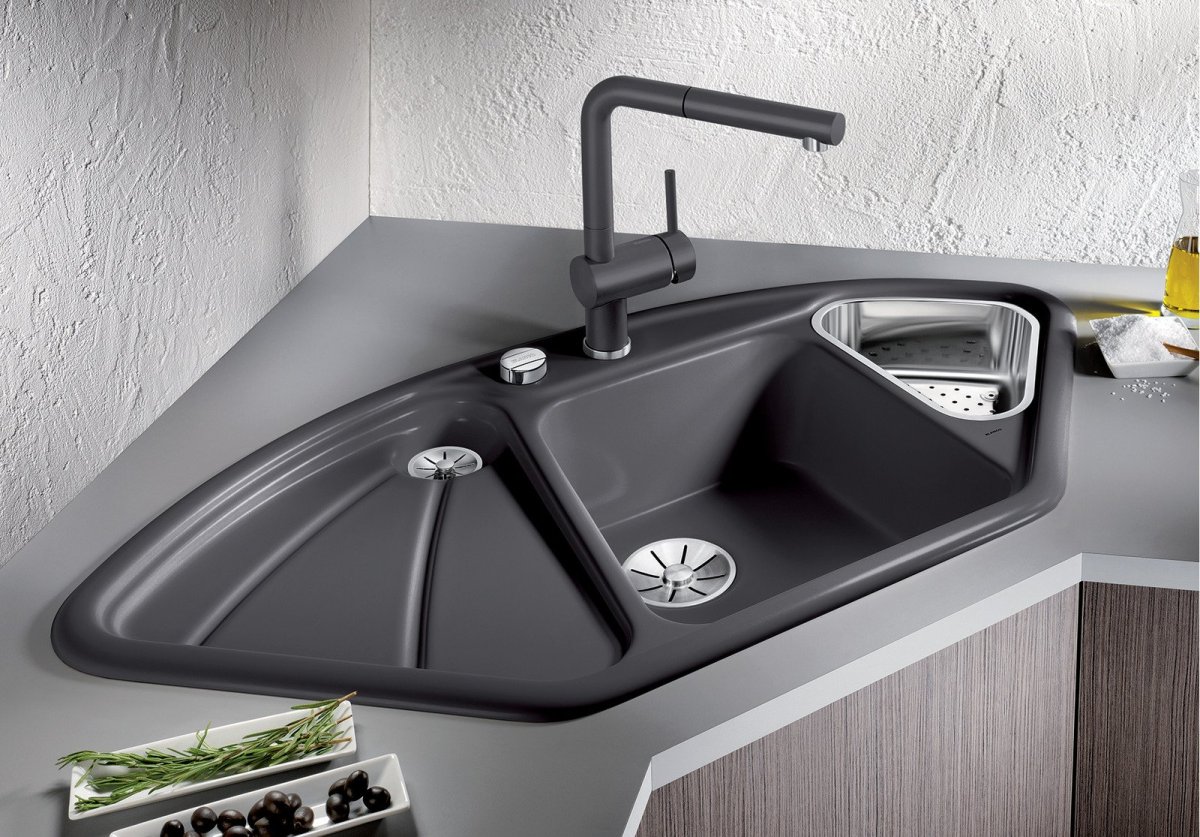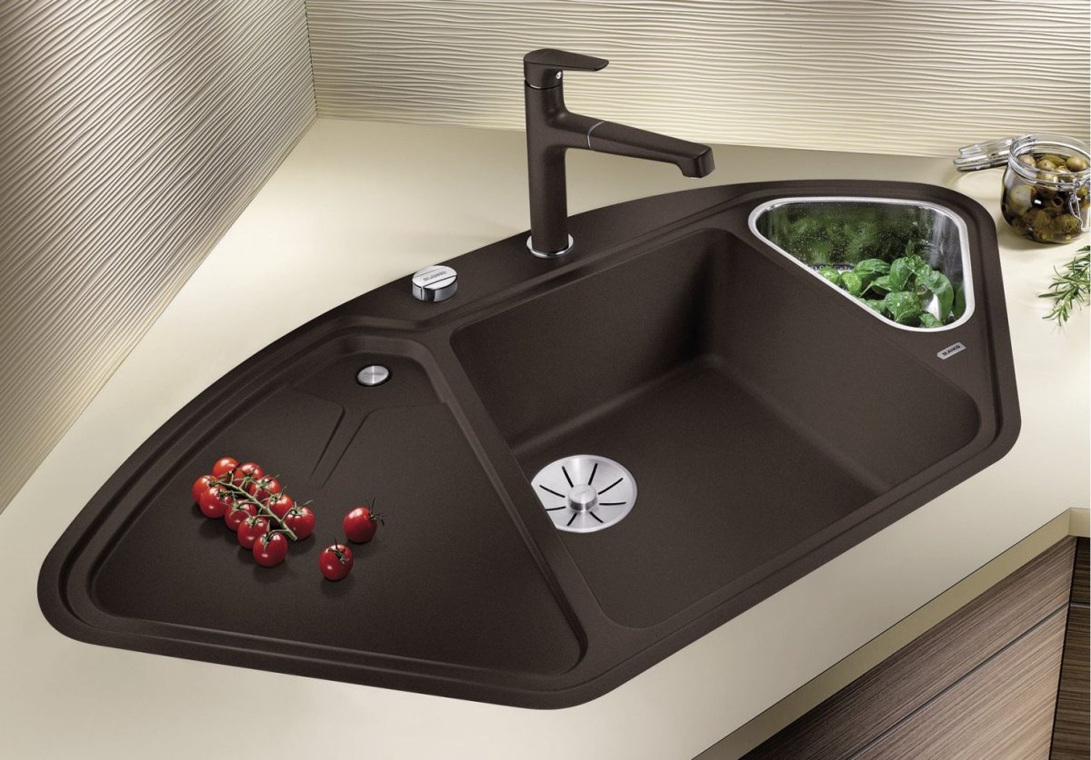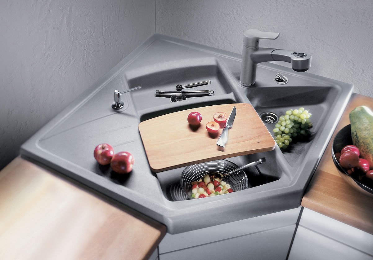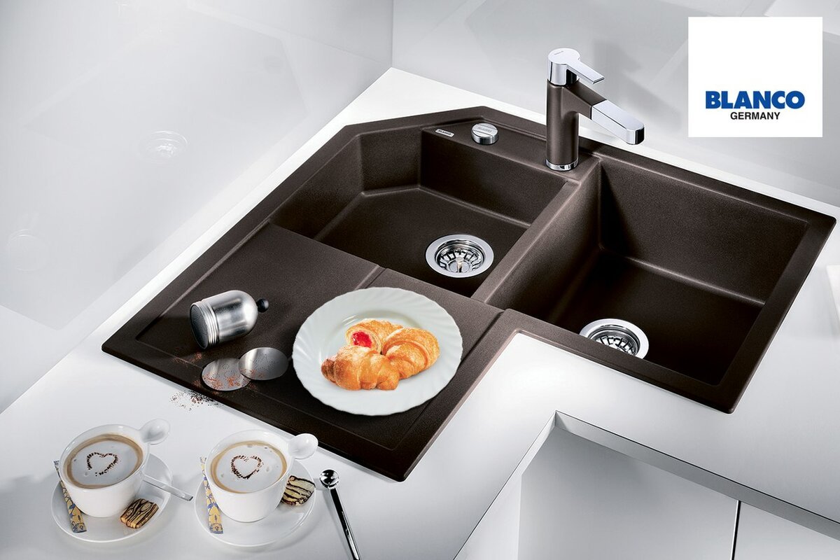 Мойка 8383 врезная угловая 830*830, нержавейка, 2 чаши, сушка