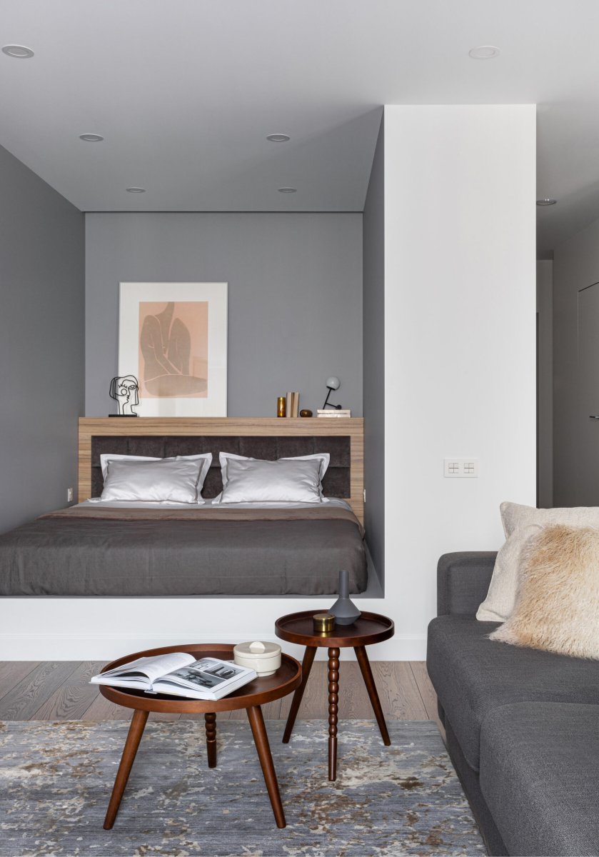 Кровать в нише в студии