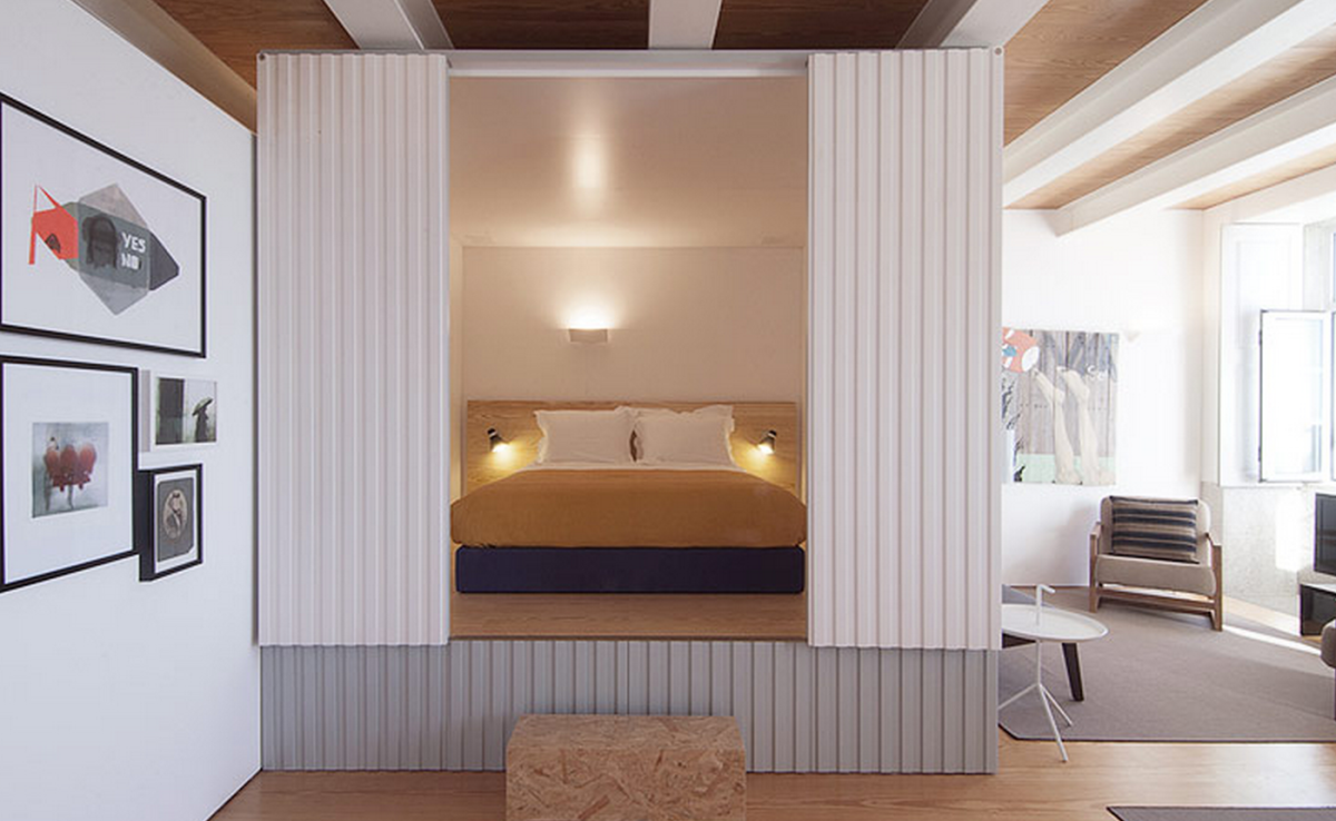 Кровать на подиуме в интерьере