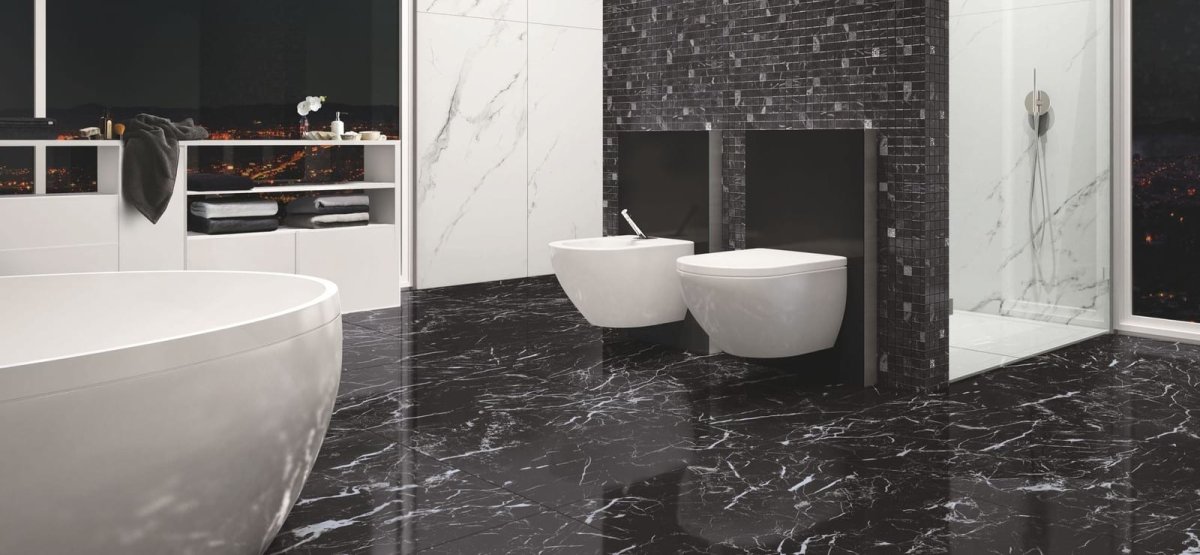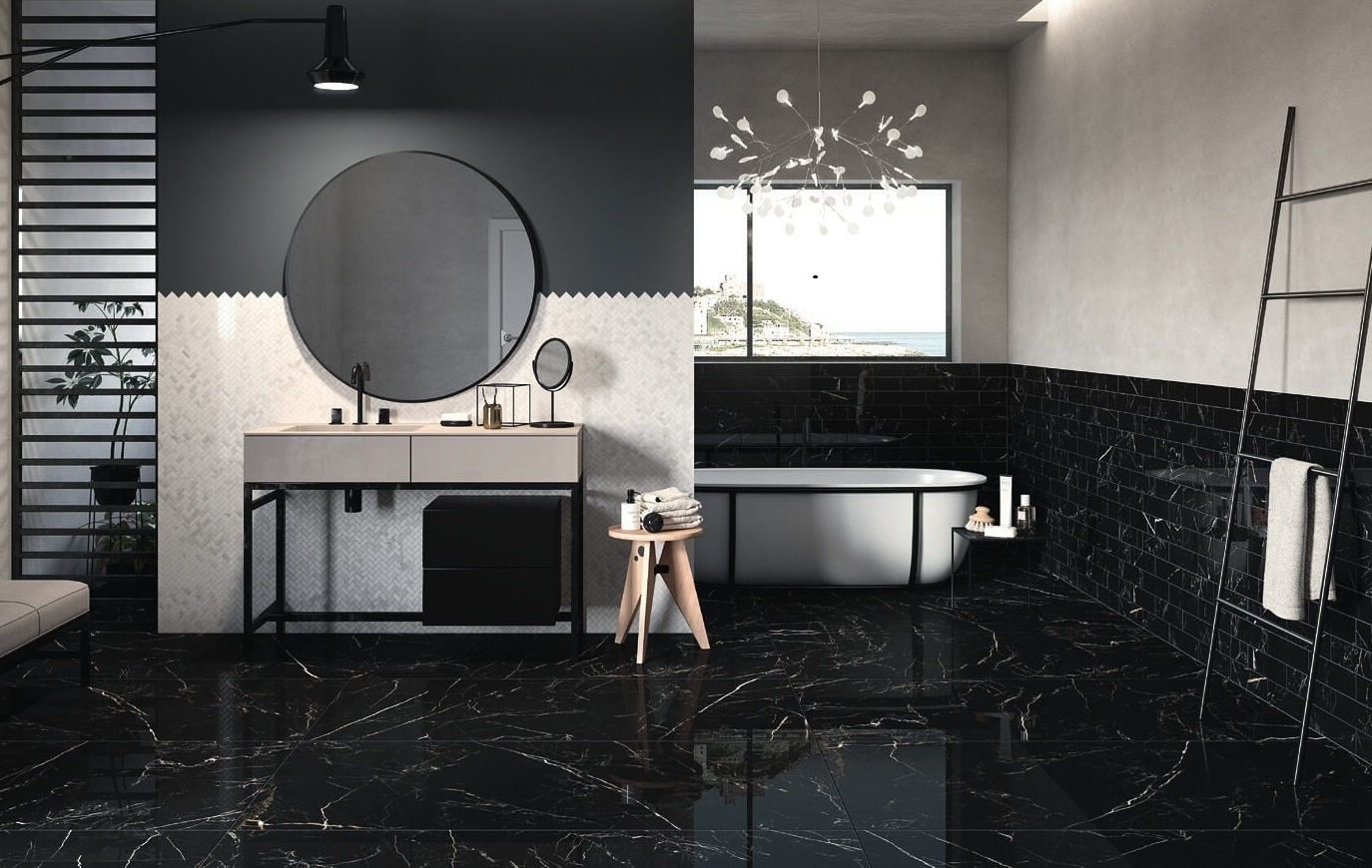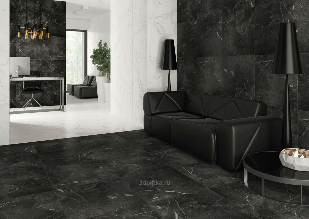 Черная плитка под мрамор в интерьере